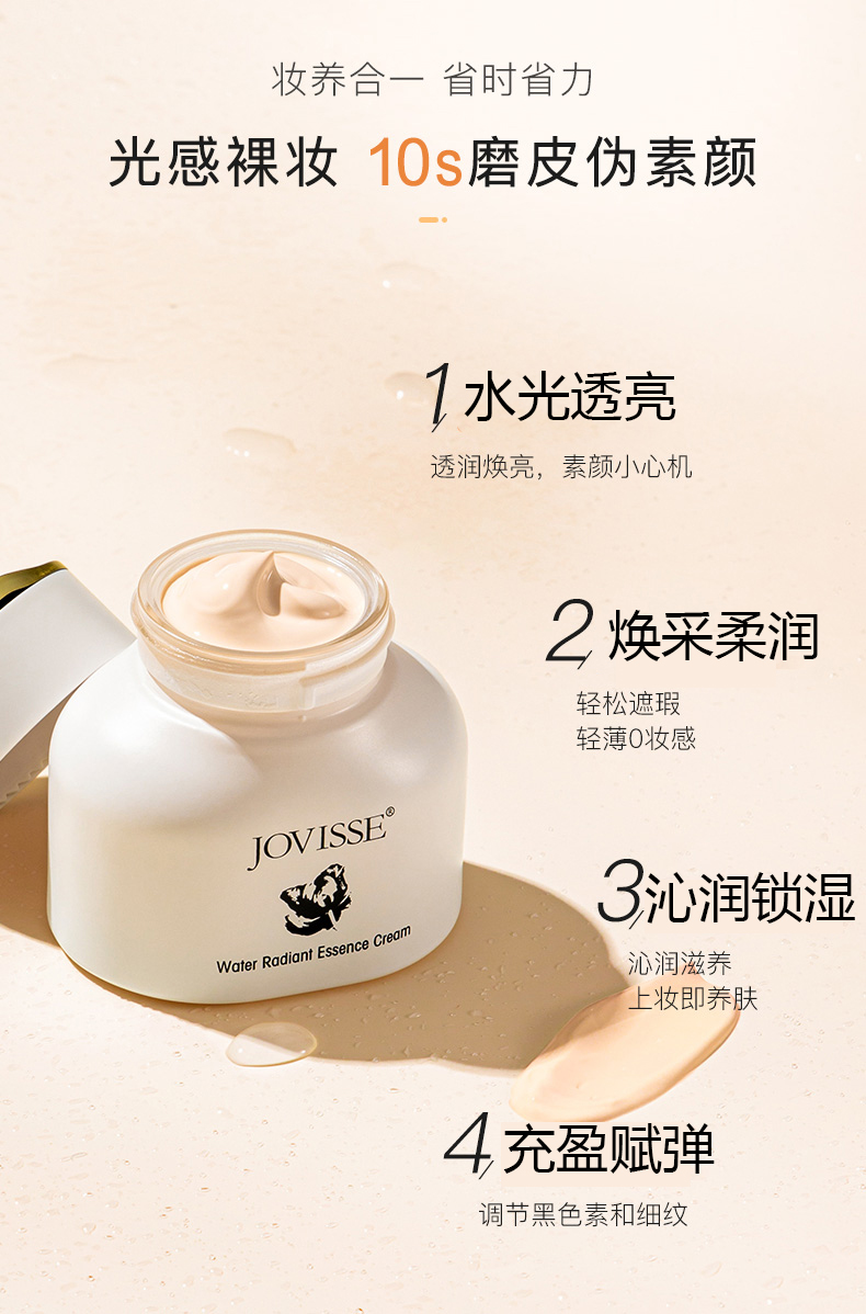 JOVISSE/洁薇丝水光焕采素颜霜50g到手一大两小