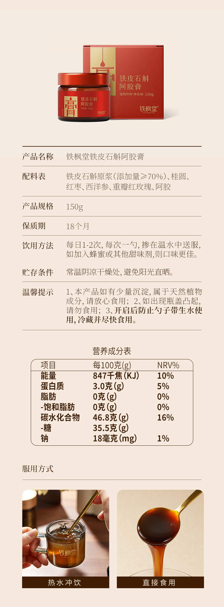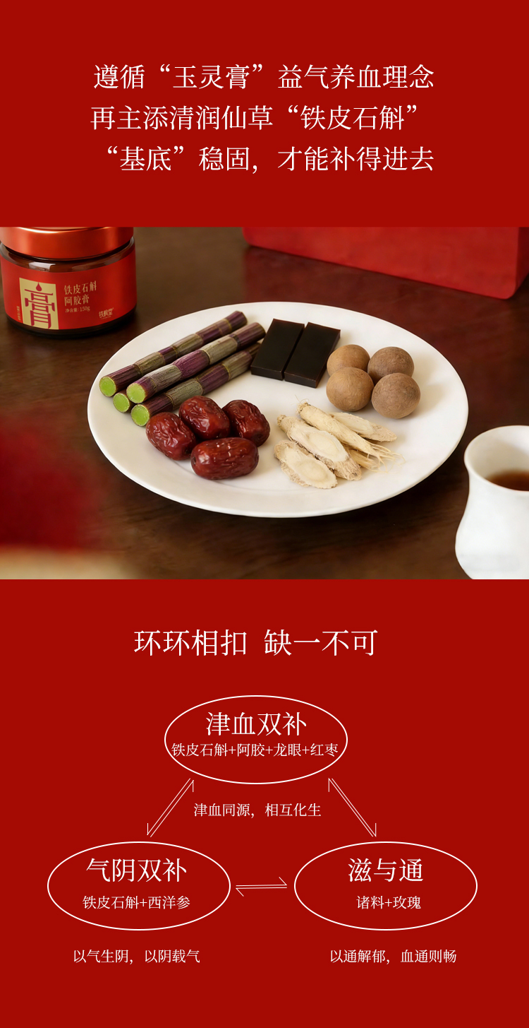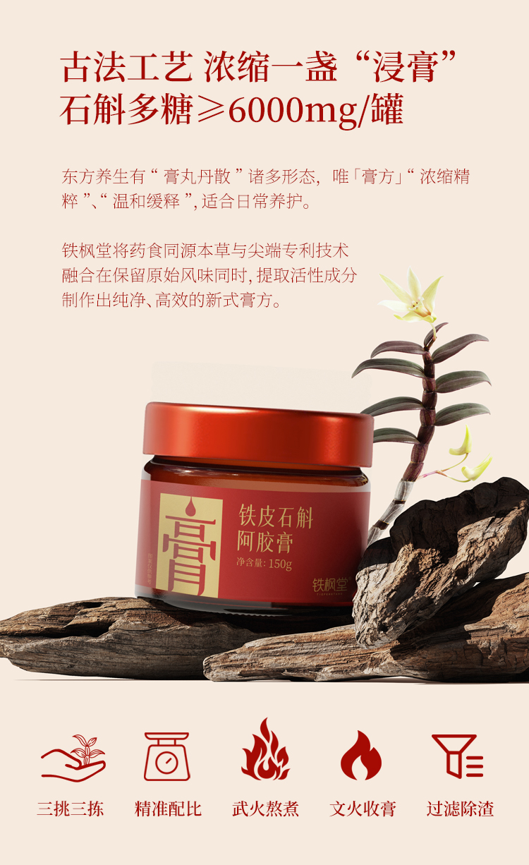 铁枫堂铁皮石斛阿胶膏古法浸膏 铁皮石斛 西洋参 阿胶 重瓣玫瑰多重滋补