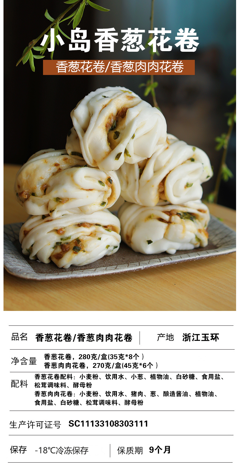 山子家小岛香葱和肉肉花卷 早餐速食 顺丰直达