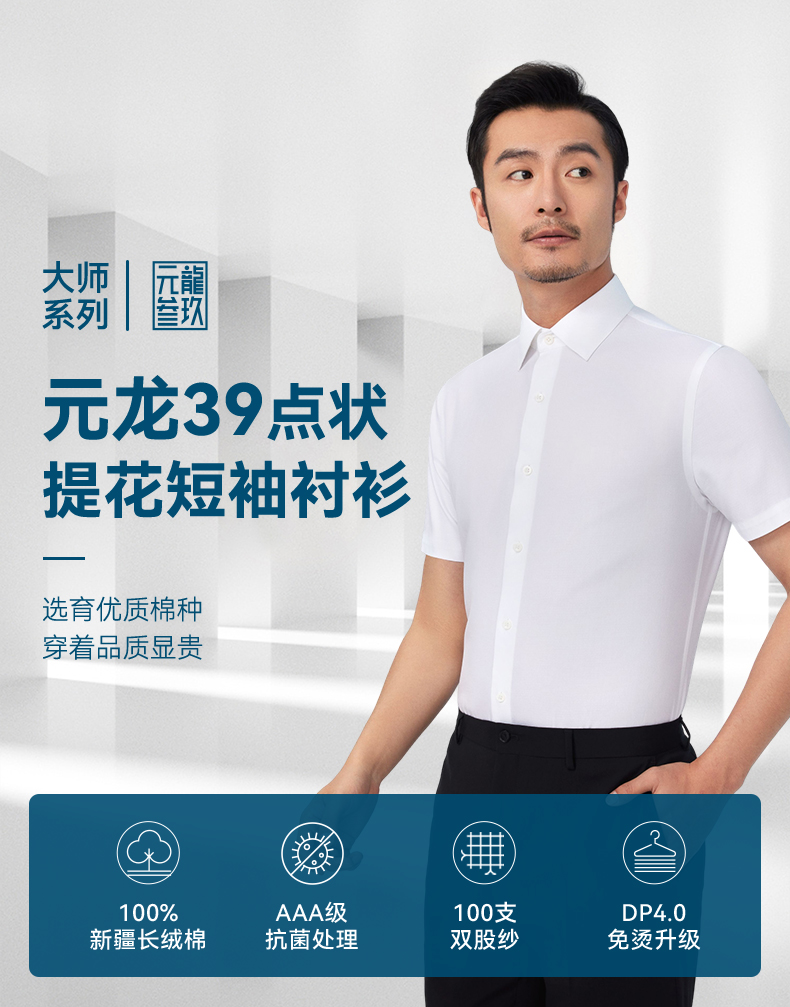 十如仕100支高纱支直尖领肌理提花免烫短袖衬衫-元龙39系列-501-02
