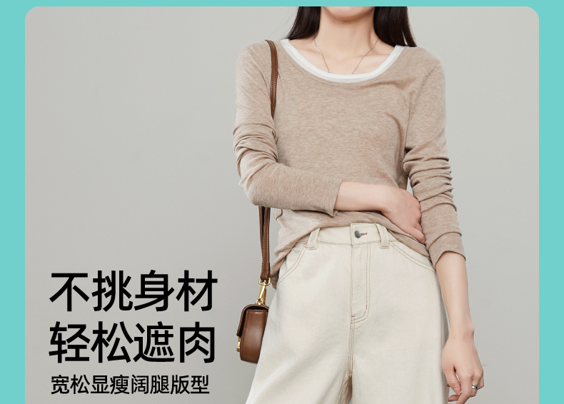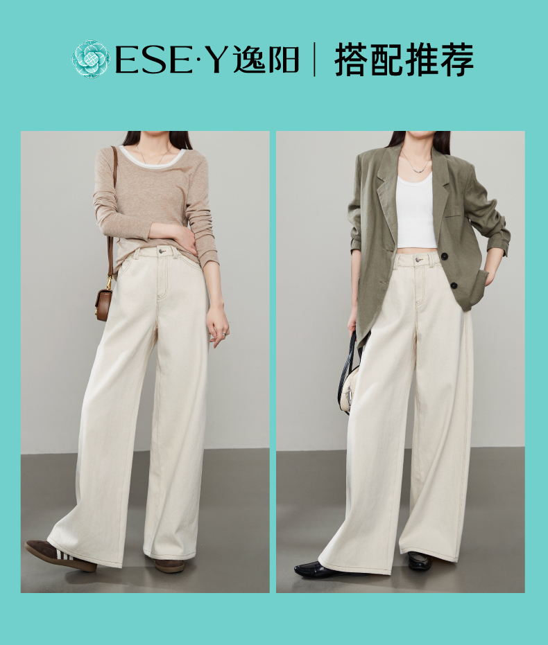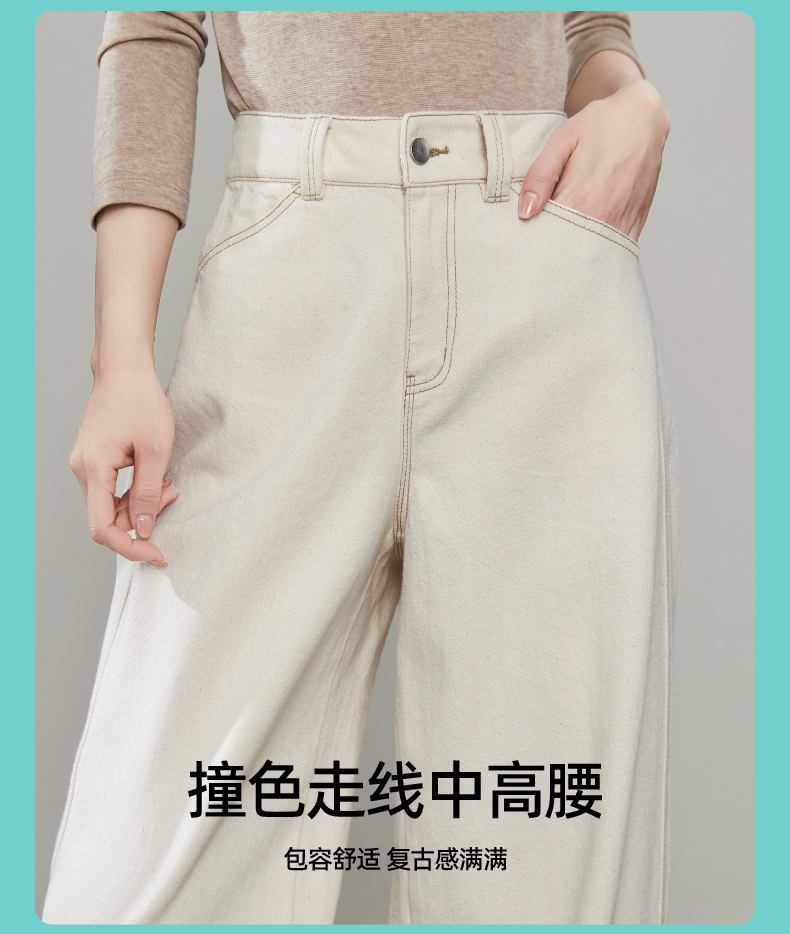 【天然全棉阔腿裤】逸阳秋款宽松显瘦宽直筒牛仔长裤子5892
