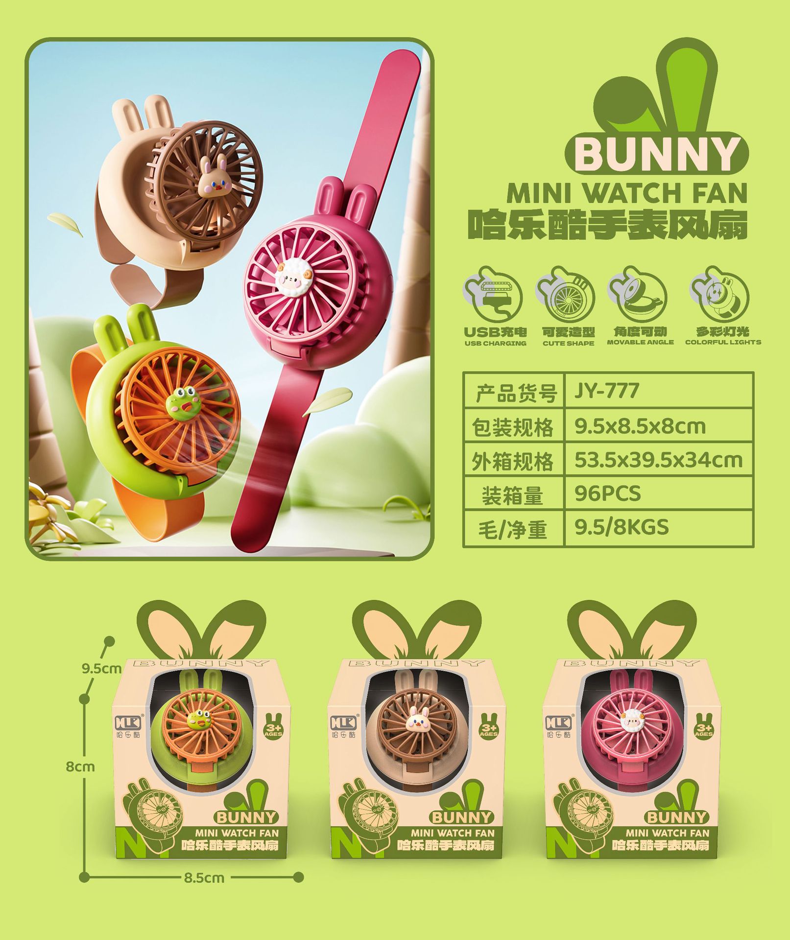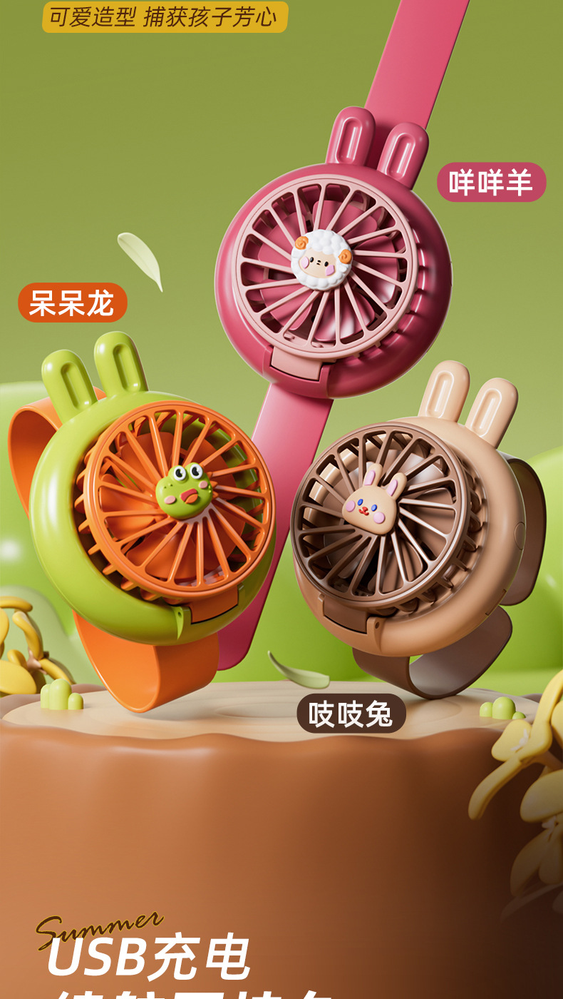 【可调节风扇不受限 随心感受清凉】儿童卡通手表风扇 三档风度 多彩炫酷灯 可调节角度 充电版续航更久~