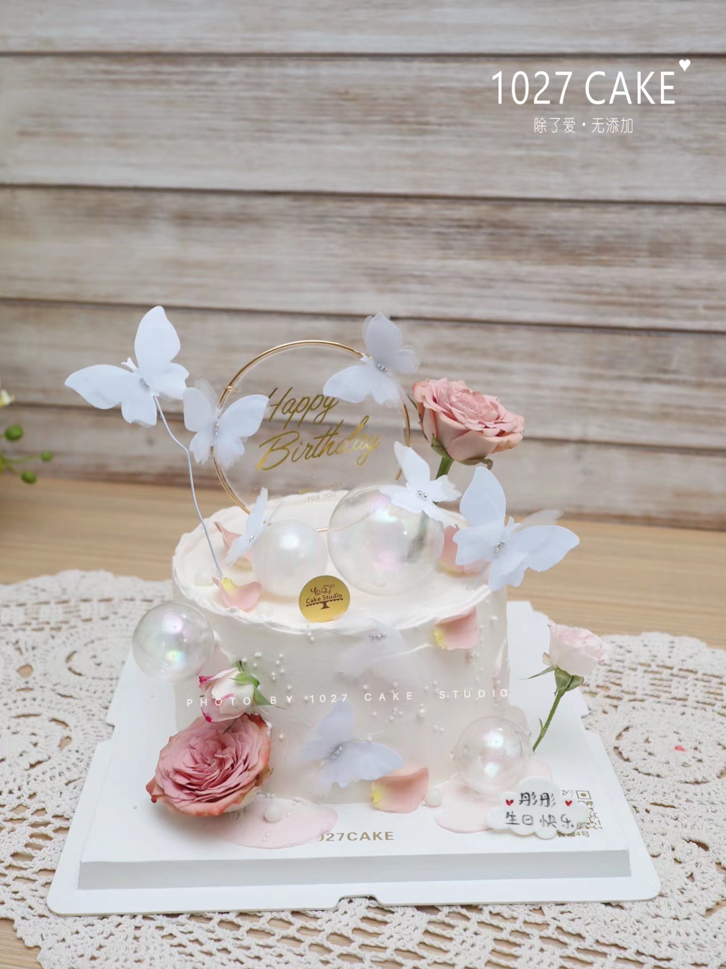 1027CAKE | 鲜花主题蛋糕 卡布奇诺玫瑰 蝴蝶