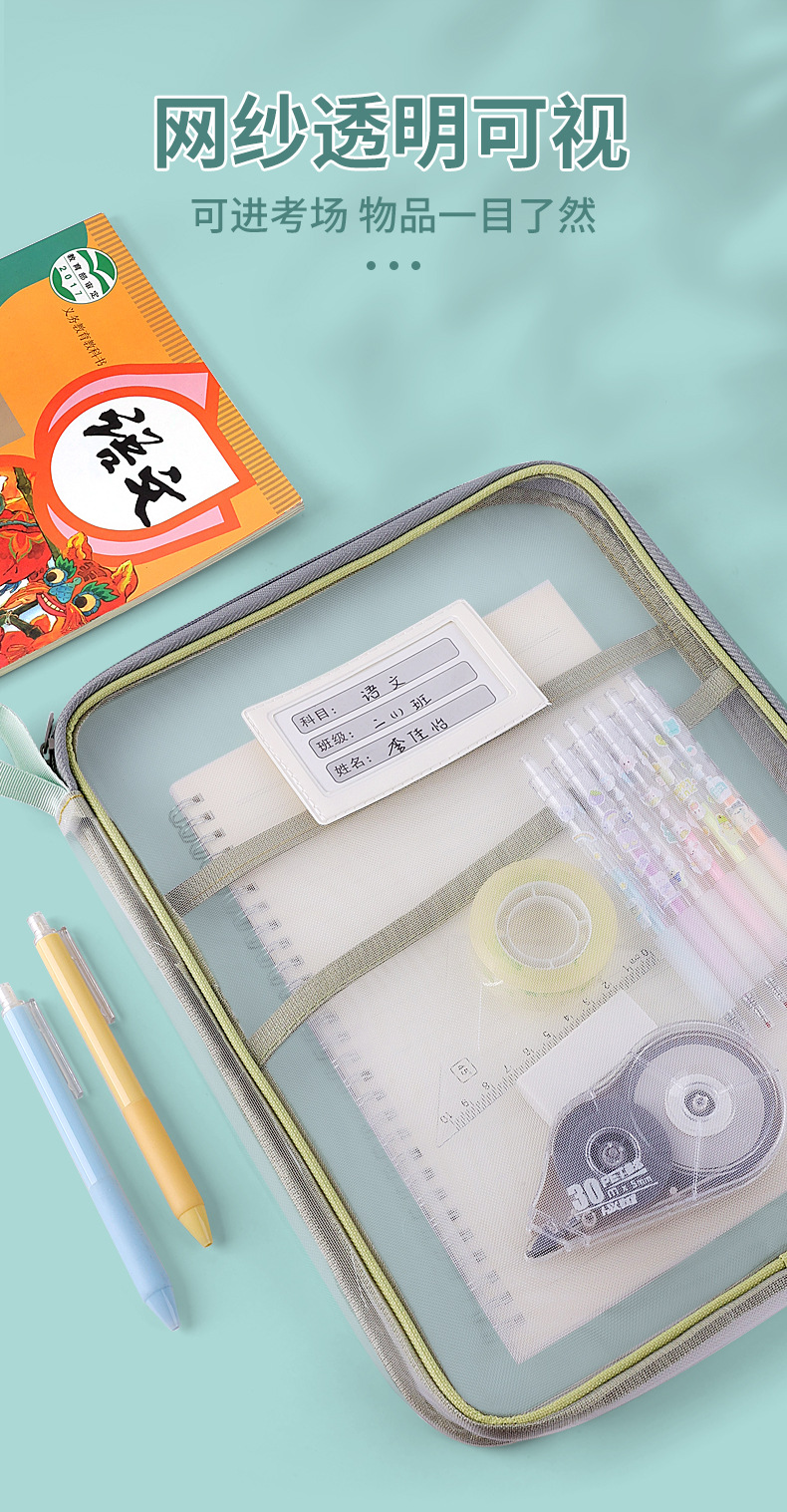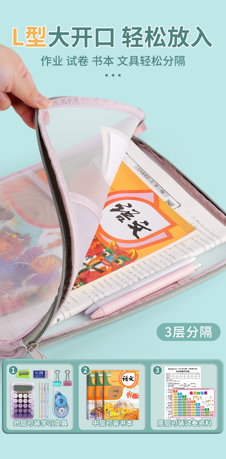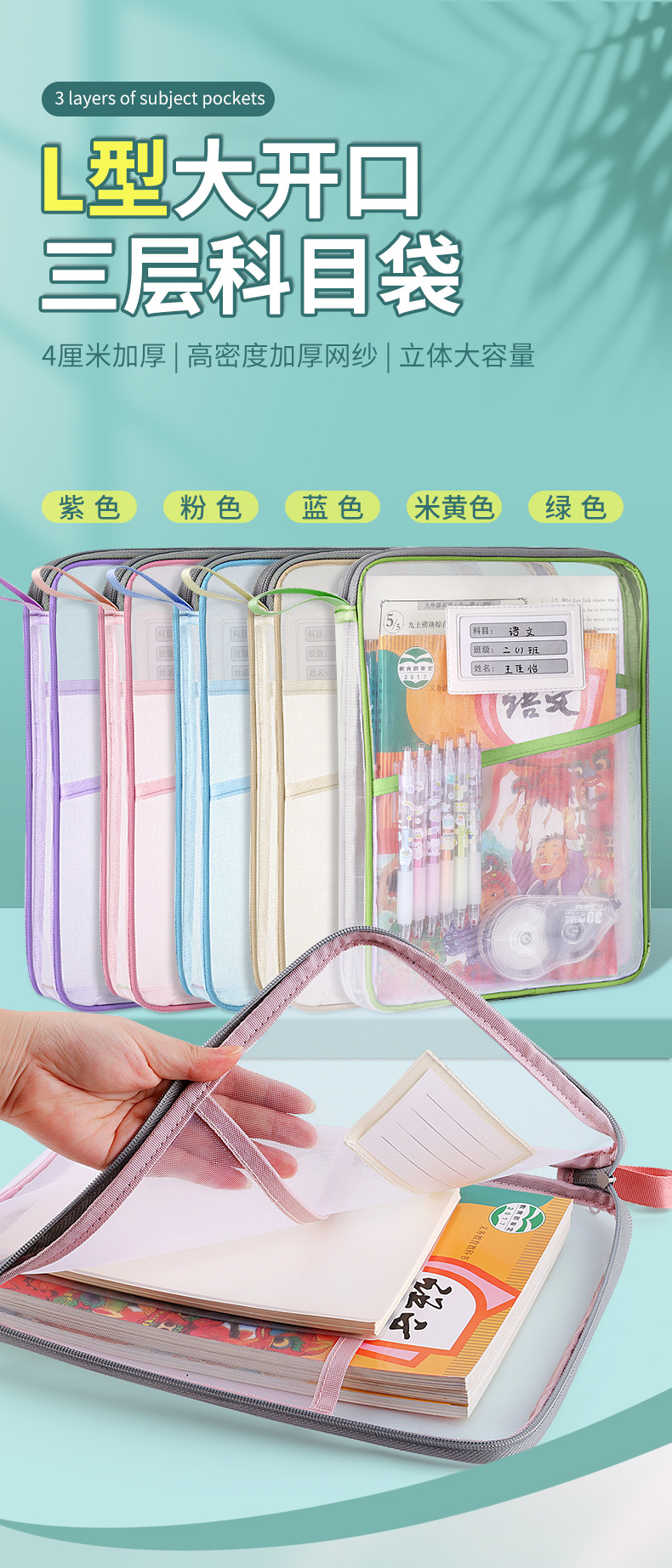 【学习收纳神器📚】新款L型设计更加人性化 加厚三层分类袋,试卷科目一袋搞定!拉链设计超方便,容量大到装下你的学霸梦✨加厚款三层大容量学生手提试卷分类袋 网纱三层科目袋 收取更方便