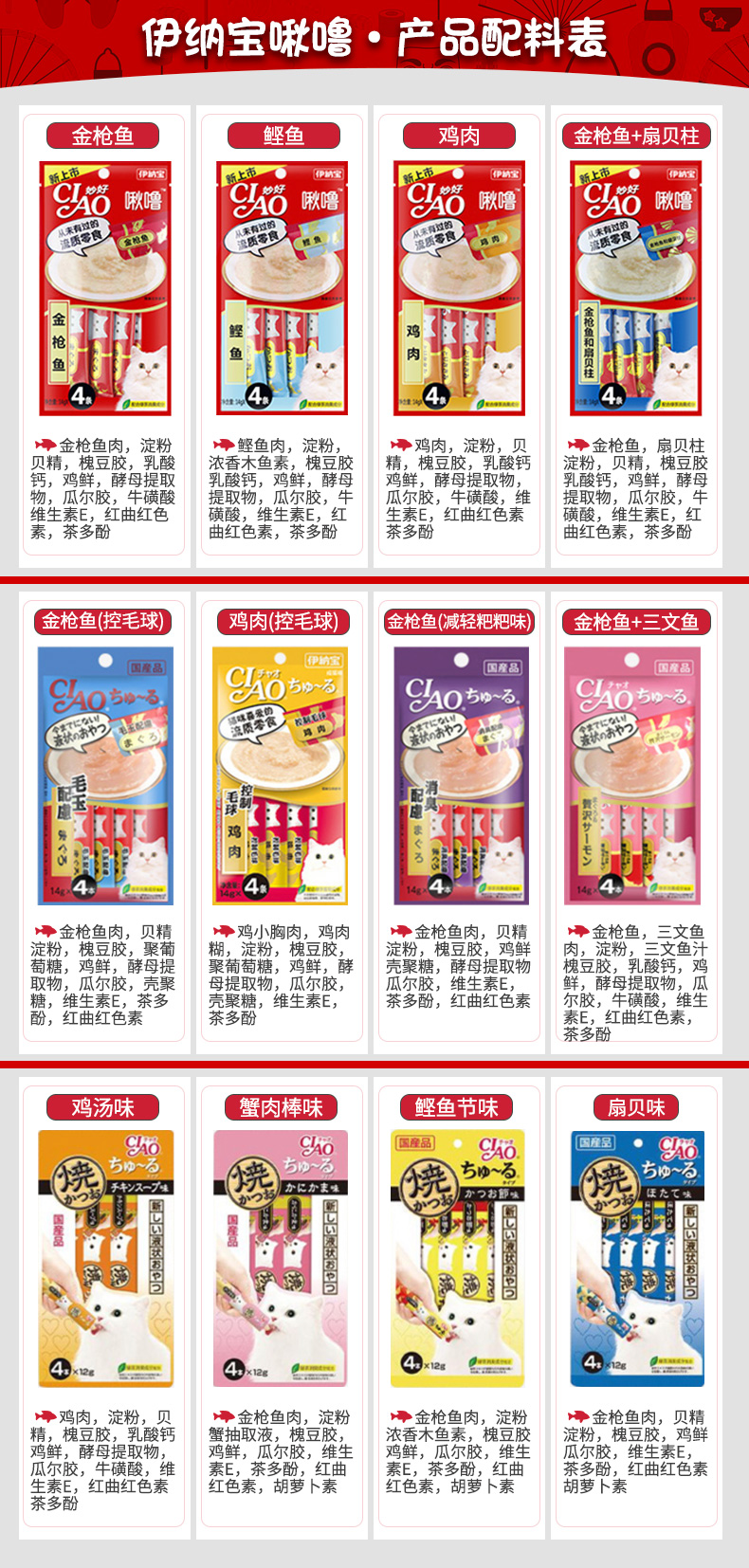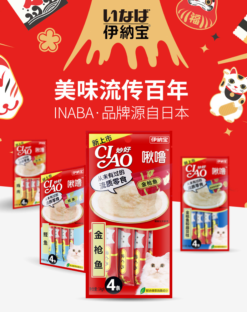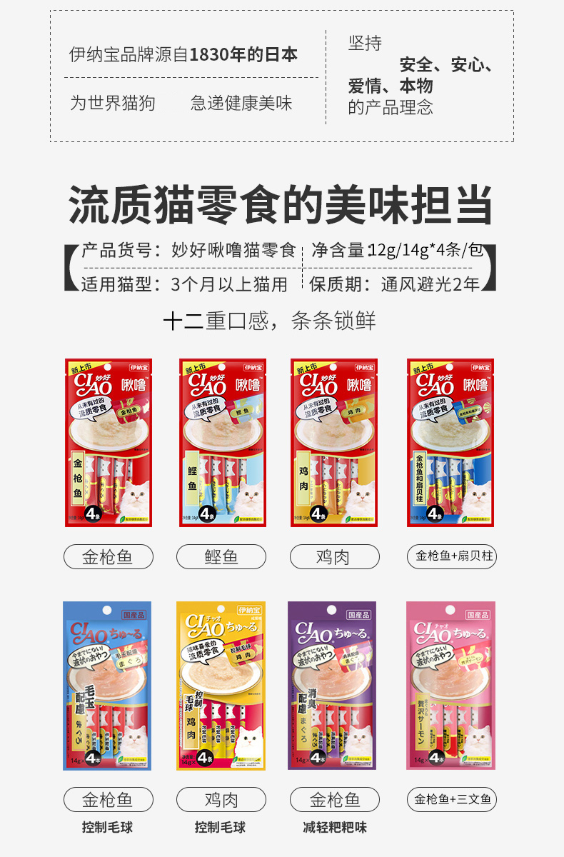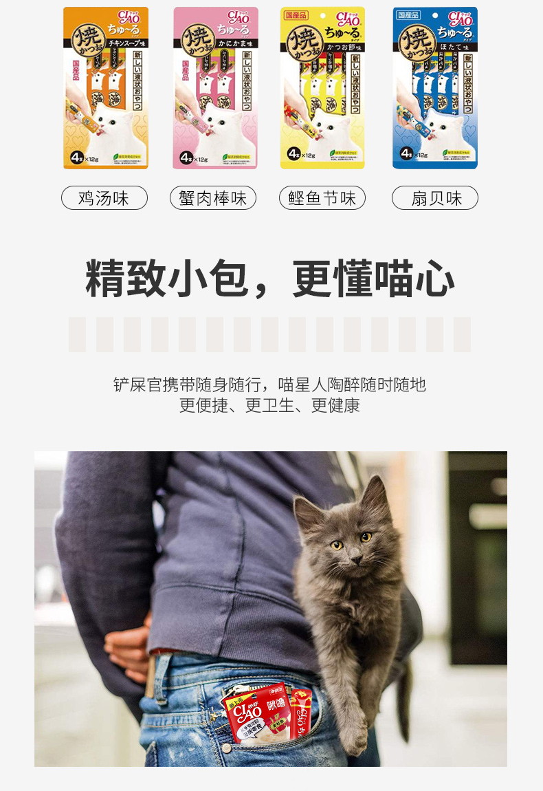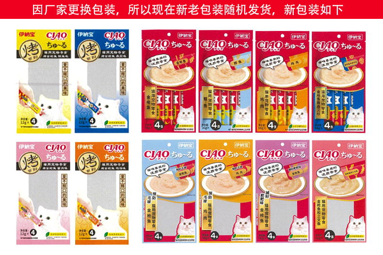 伊纳宝妙好猫零食啾噜流质猫条整箱48包192支