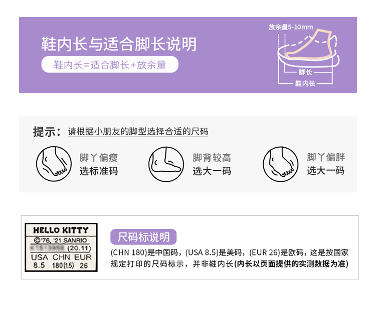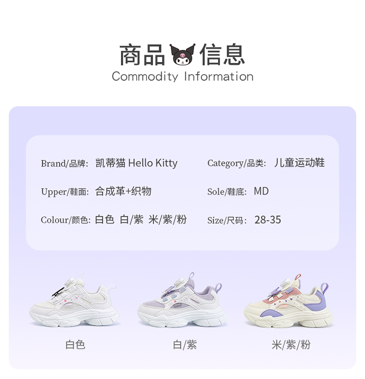 hellokitty库洛米女童运动鞋春秋儿童小白鞋女孩老爹鞋28-35 KU5516808