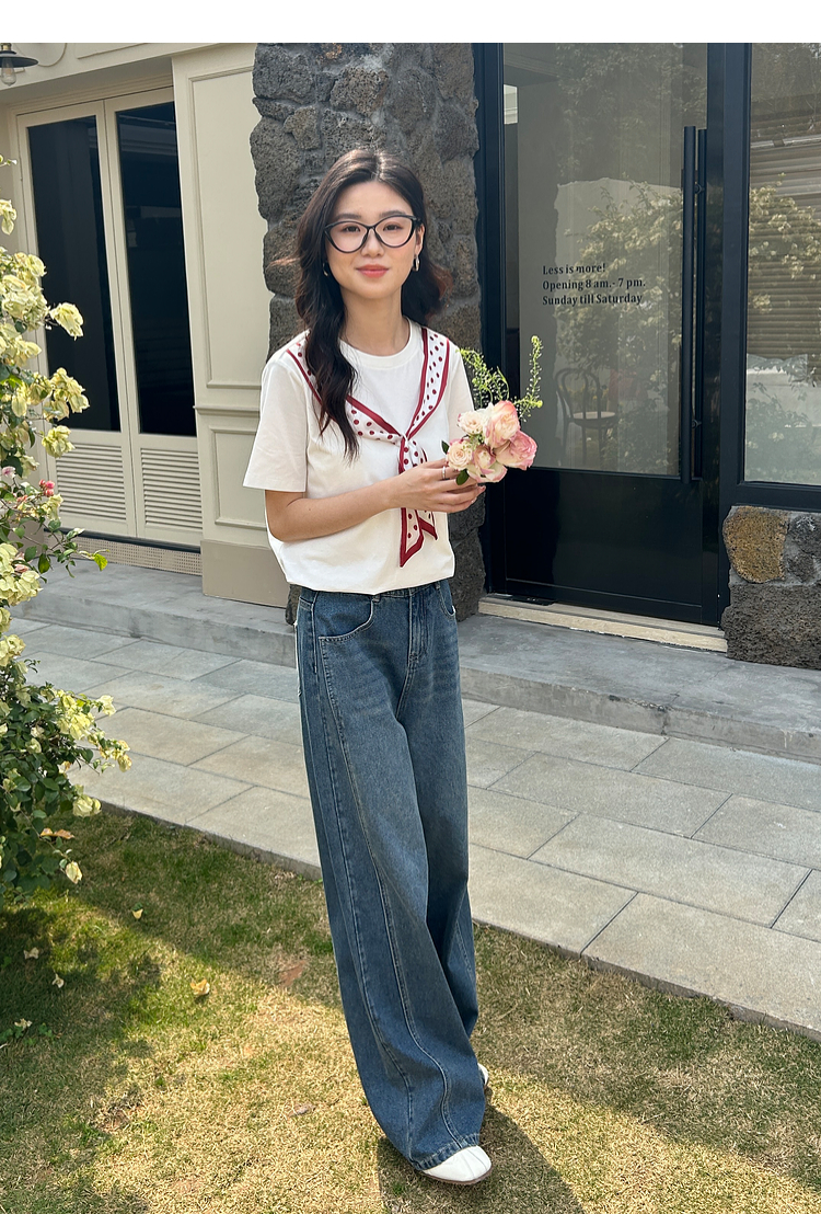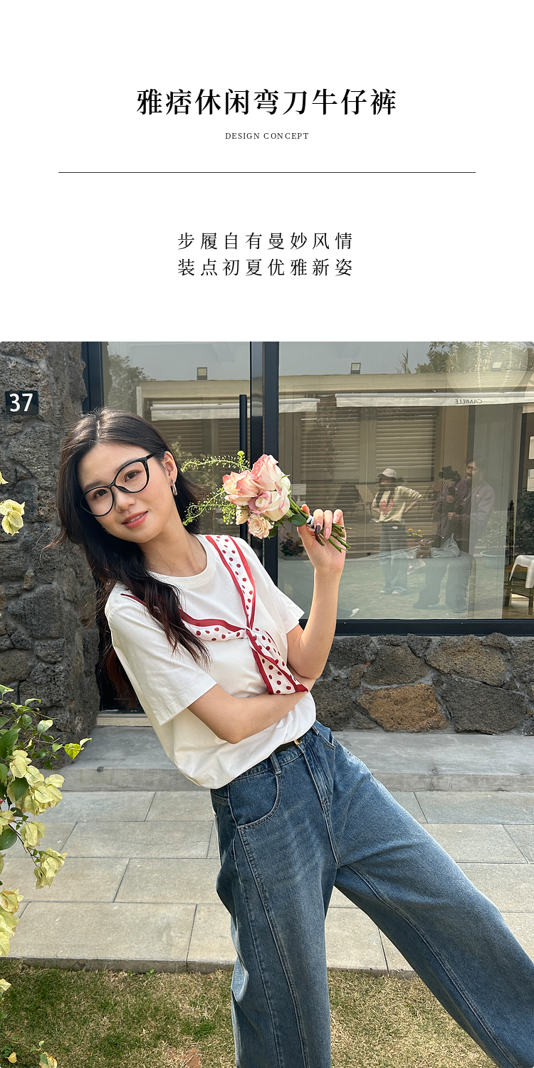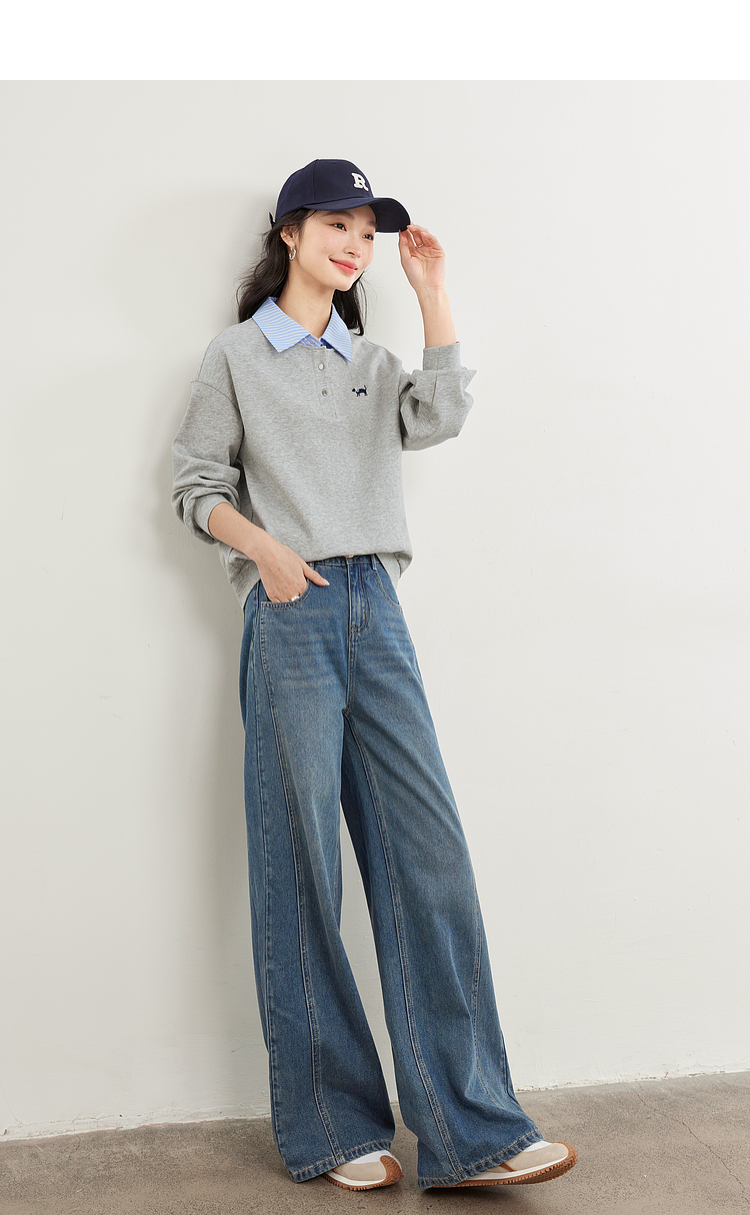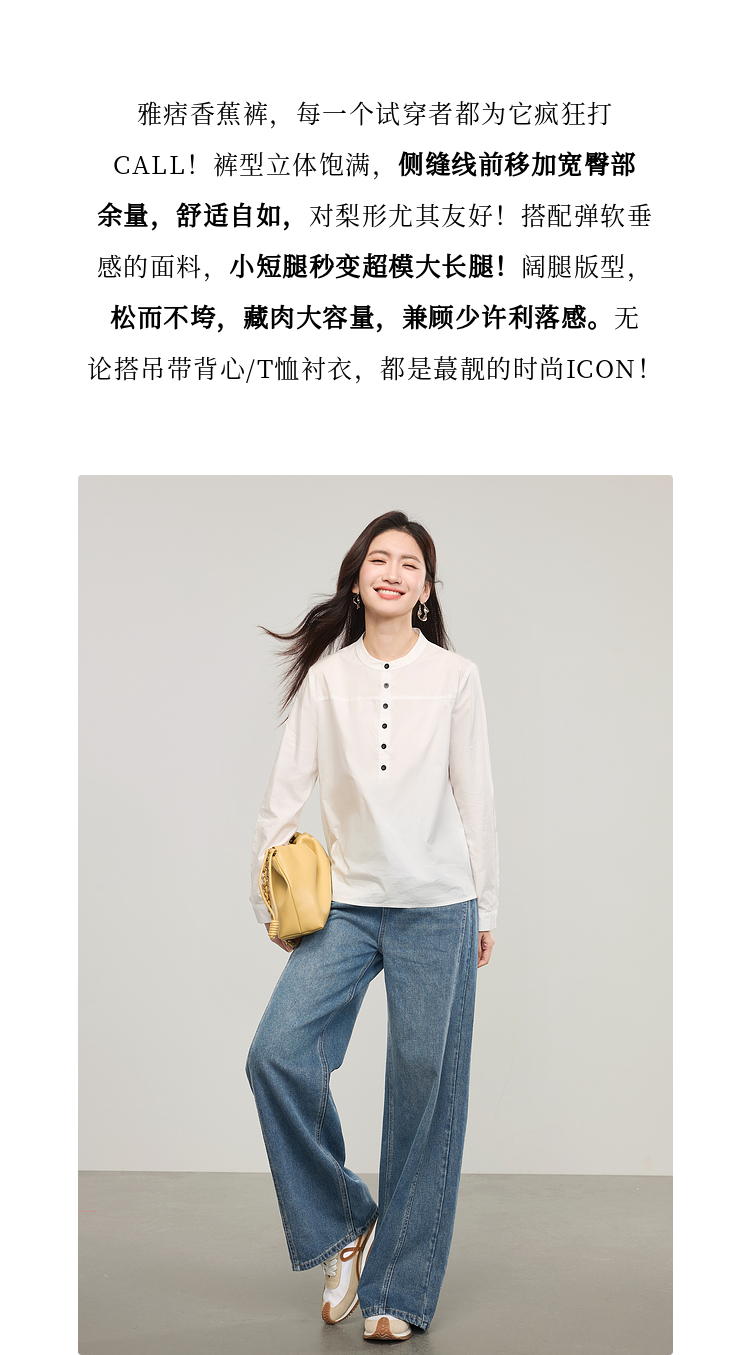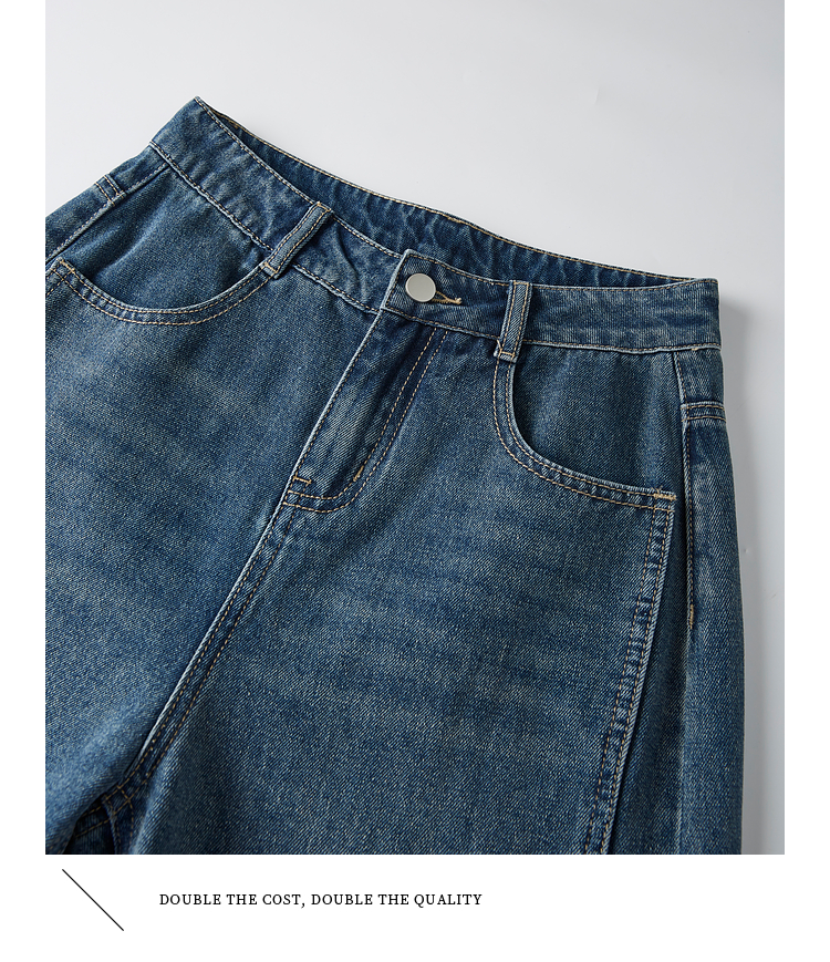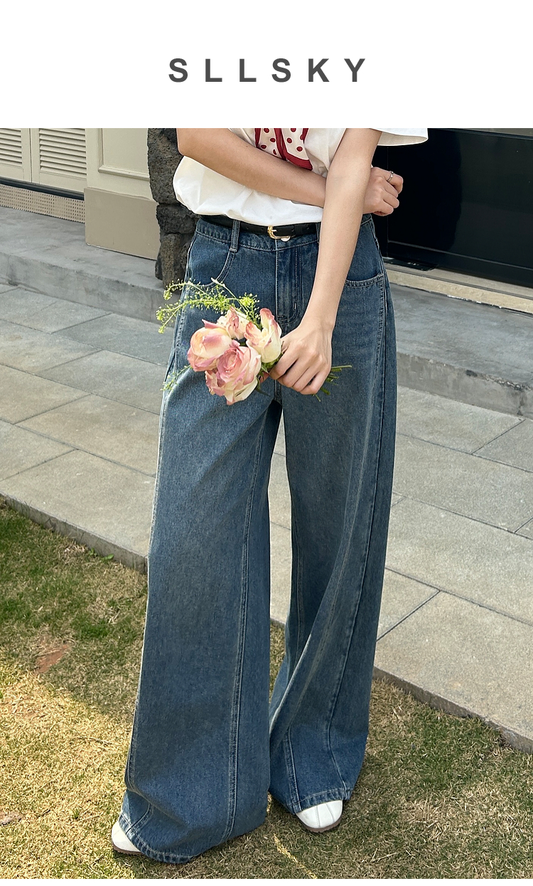 【专属特价】熙世界分割线设计阔腿牛仔裤女2025春夏新款美式复古宽松直筒裤子