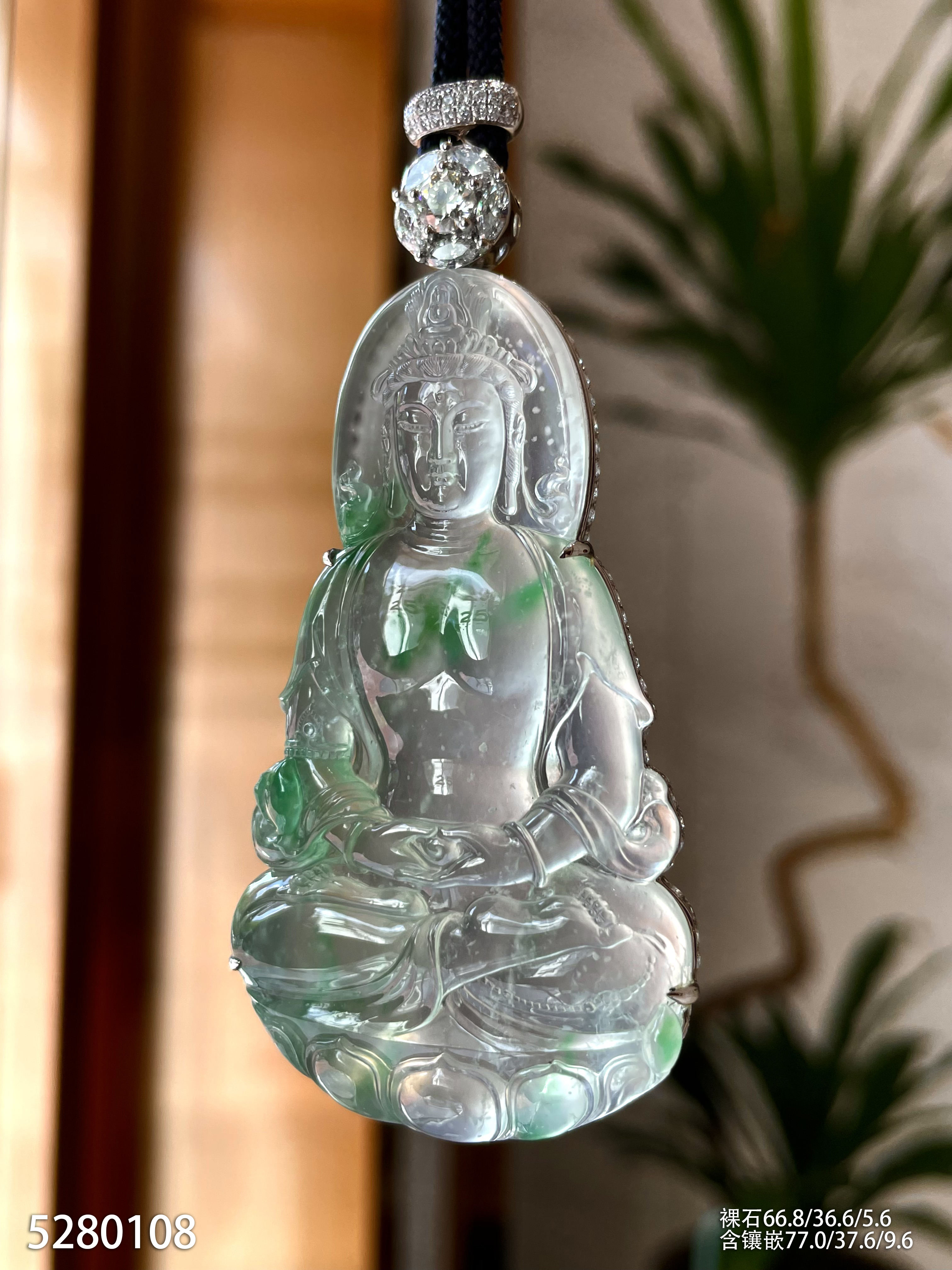 玻璃种木那飘翠观音吊坠【5280108】具体价格微信咨询