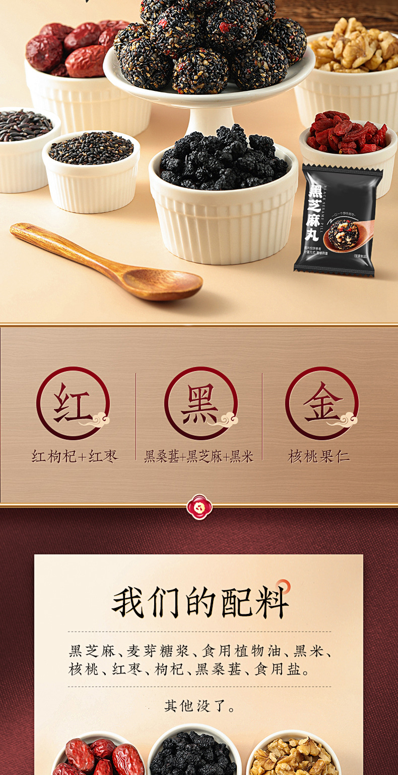 「独立包装!五珍芝麻丸」红枣丸核桃枸杞纯黑芝麻丸 桑葚枸杞芝麻球孕妇营养糕点小零食