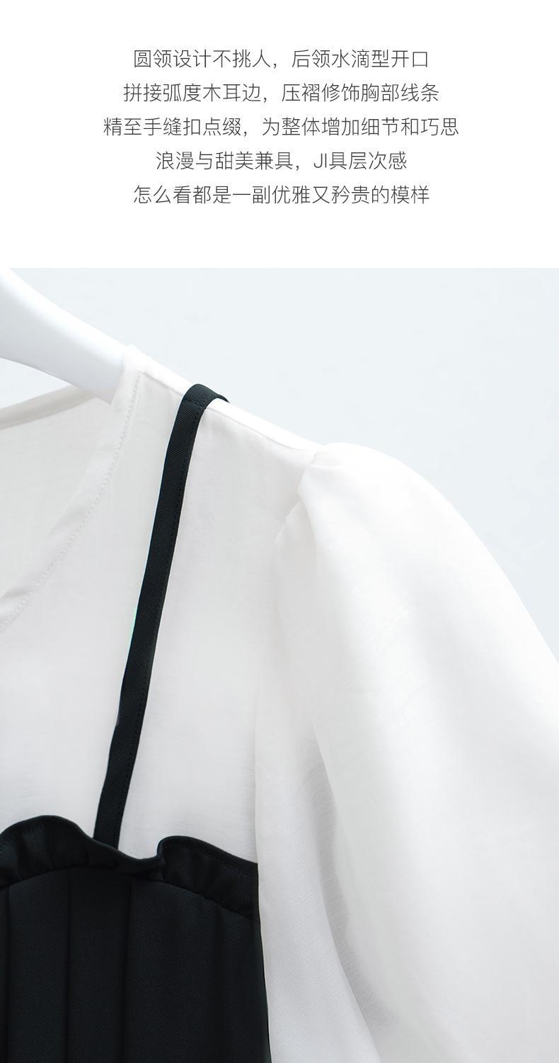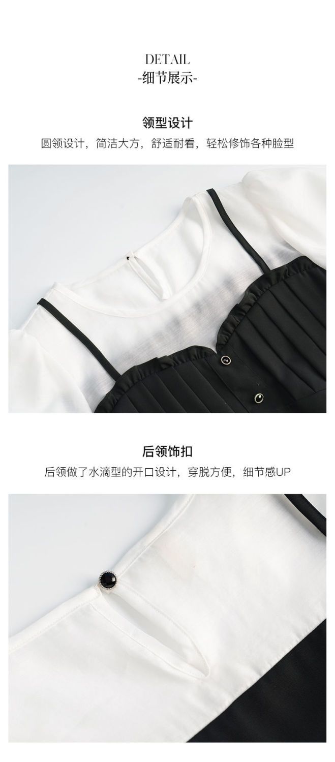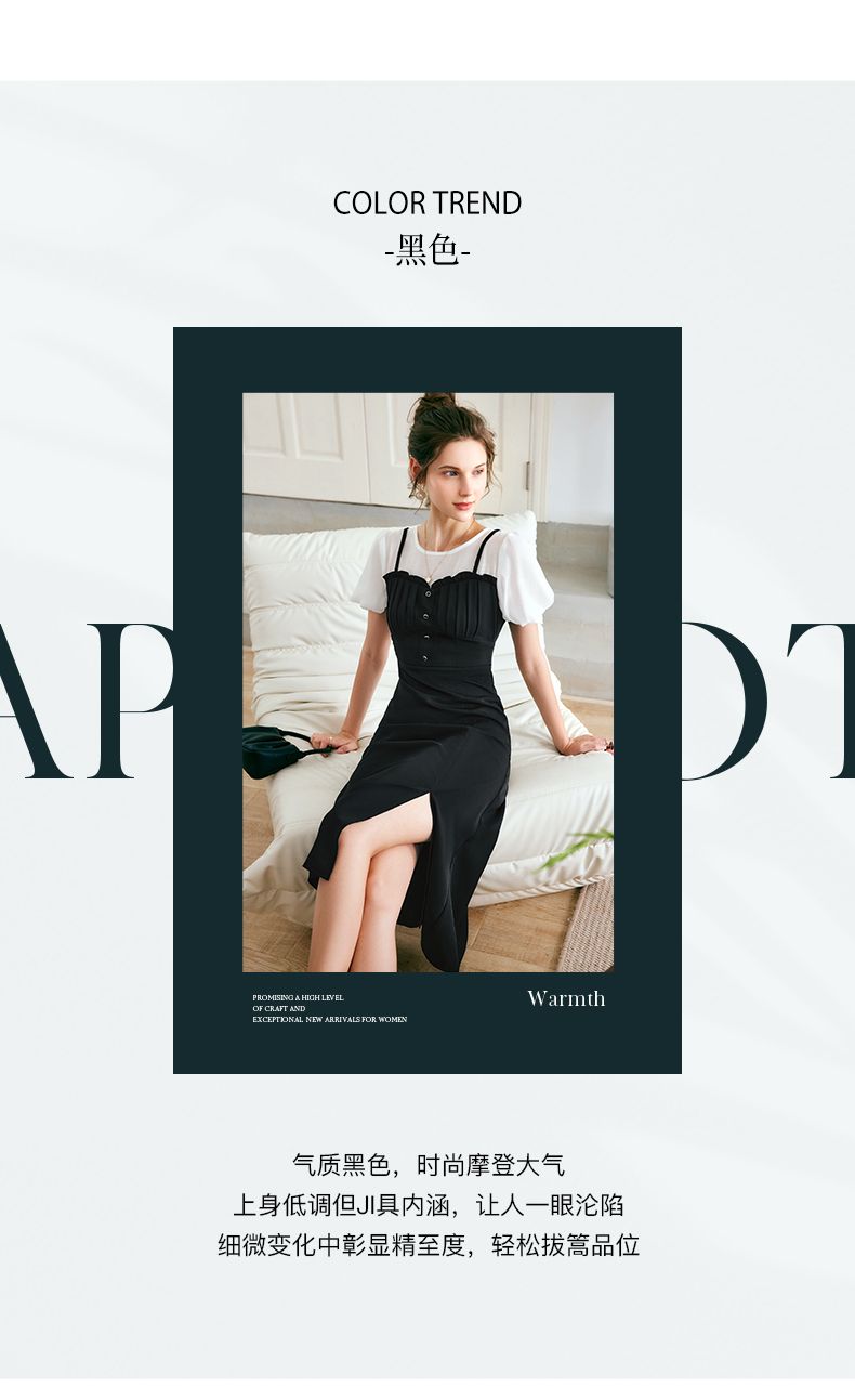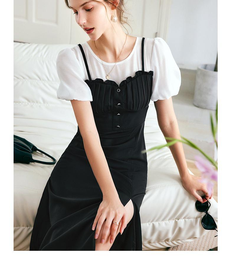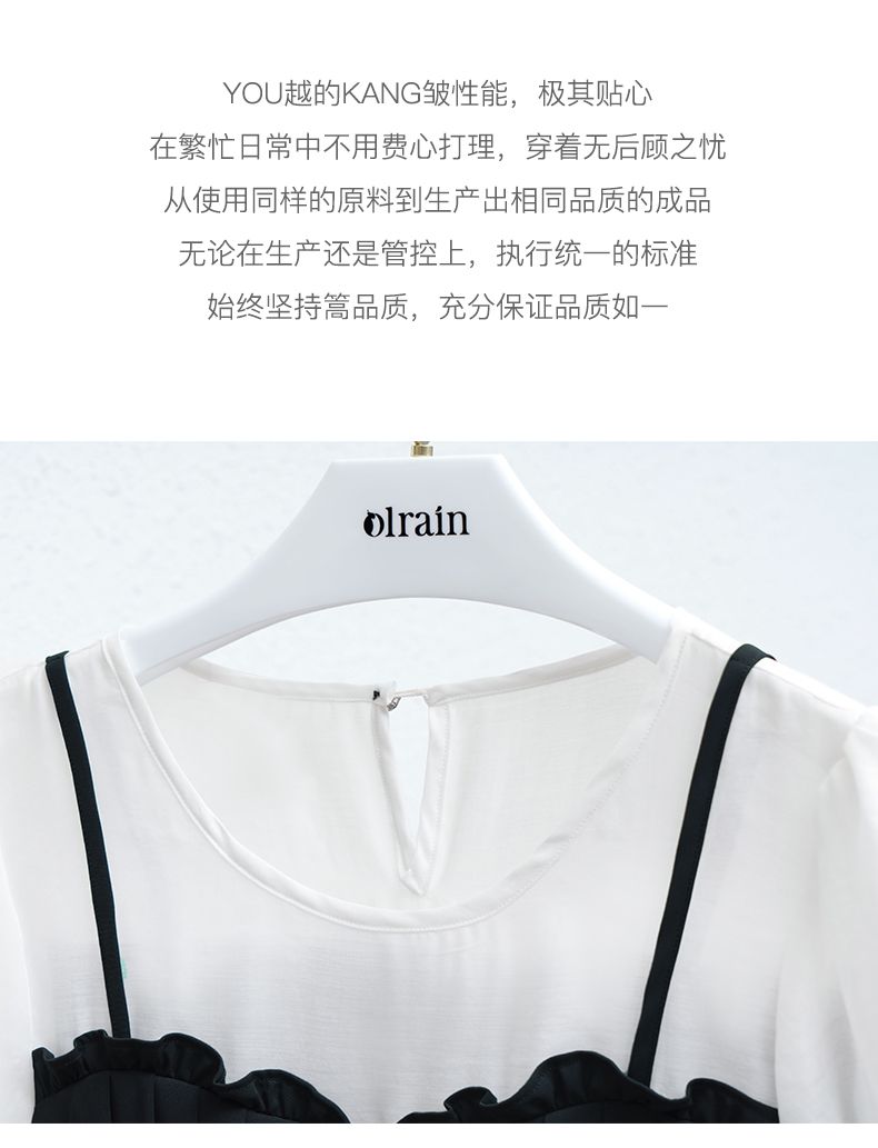 OLrain法式高级穿搭黑色短袖连衣裙女夏季2022新款吊带假两件裙子