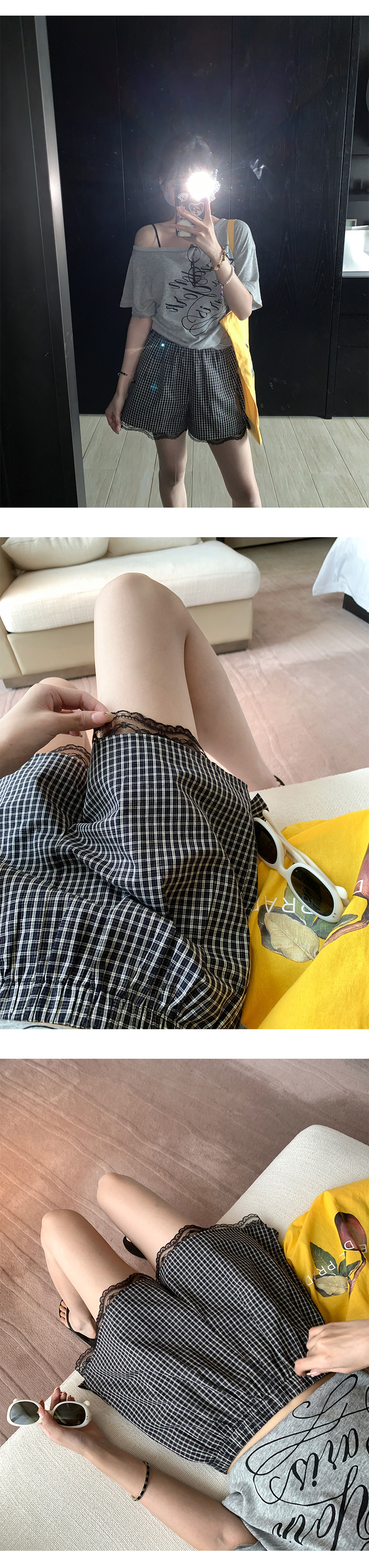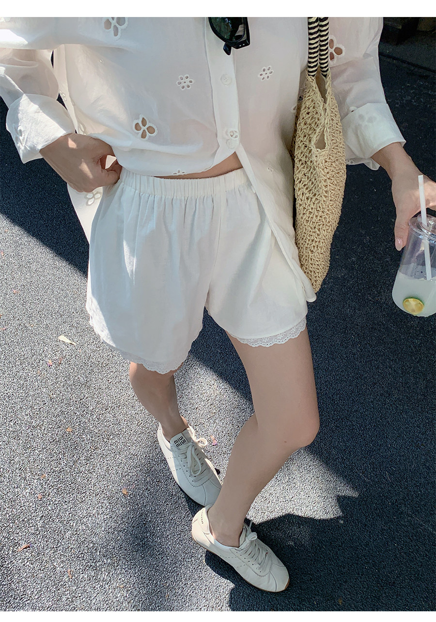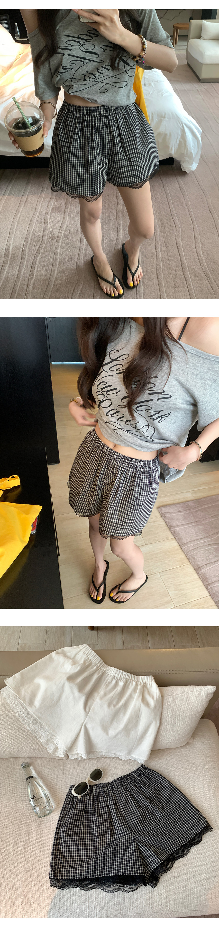 EKOOL衣库 蕾丝花边棉麻高腰短裤女夏季松紧腰宽松百搭显瘦休闲裤