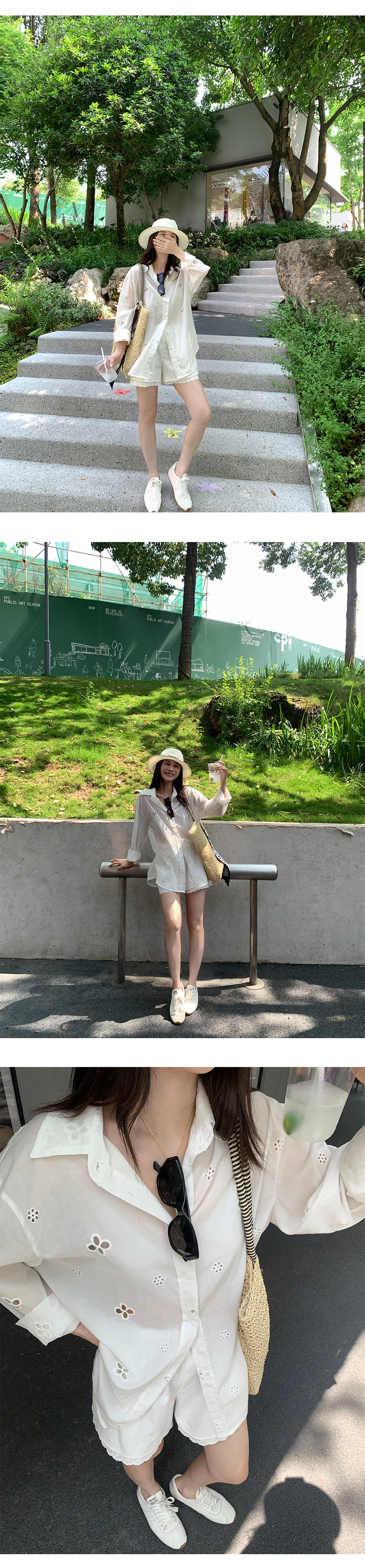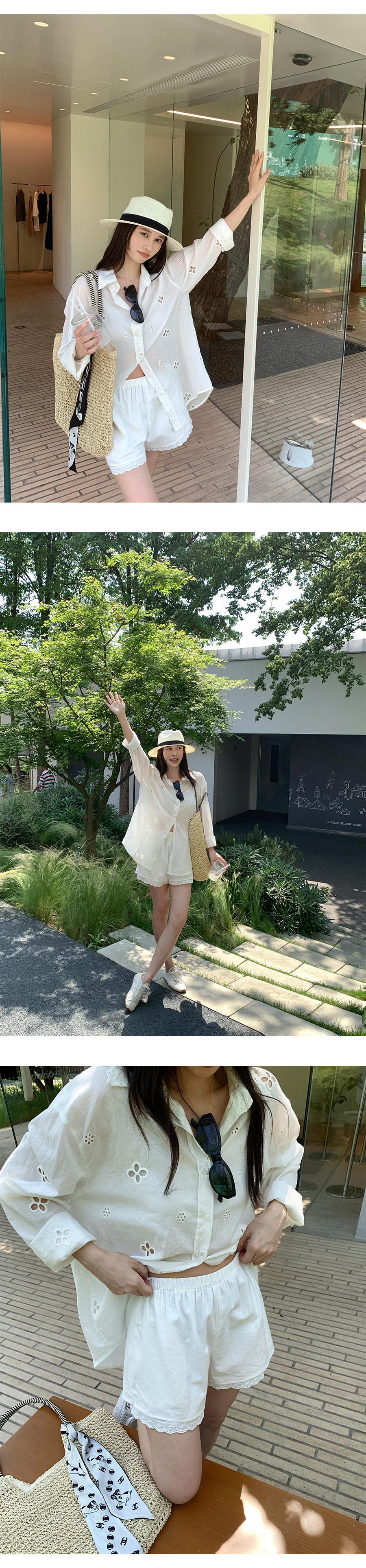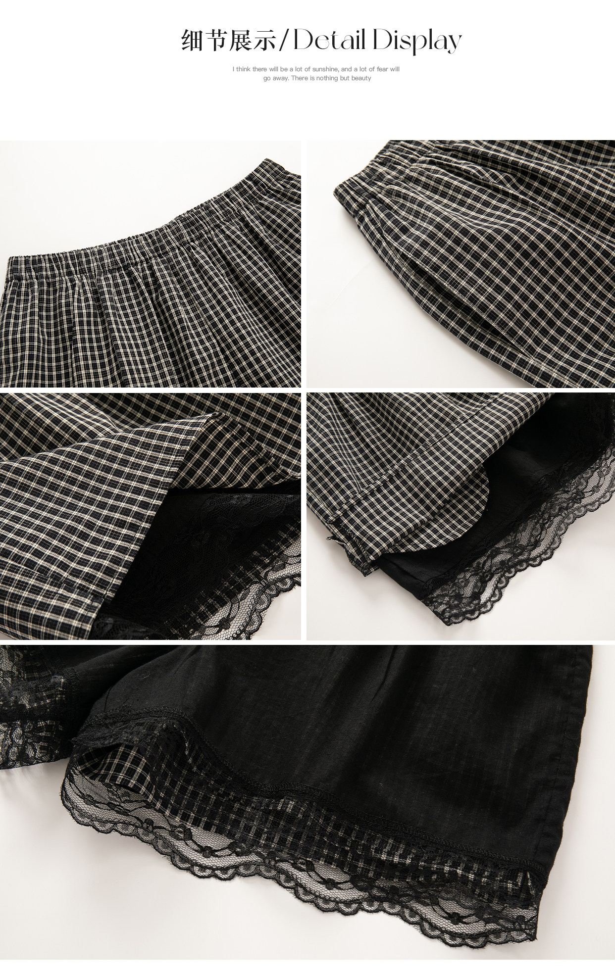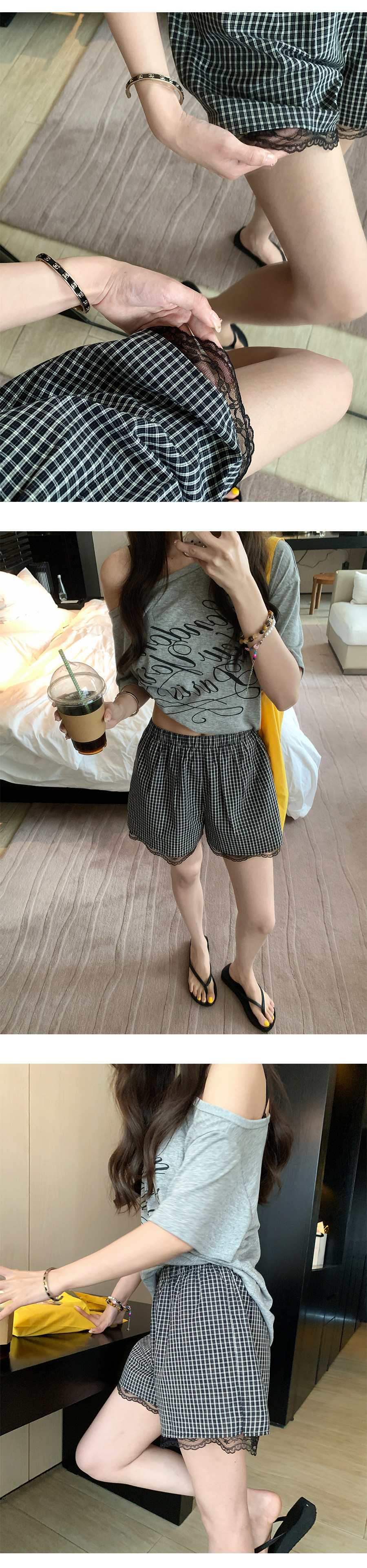 EKOOL衣库 蕾丝花边棉麻高腰短裤女夏季松紧腰宽松百搭显瘦休闲裤