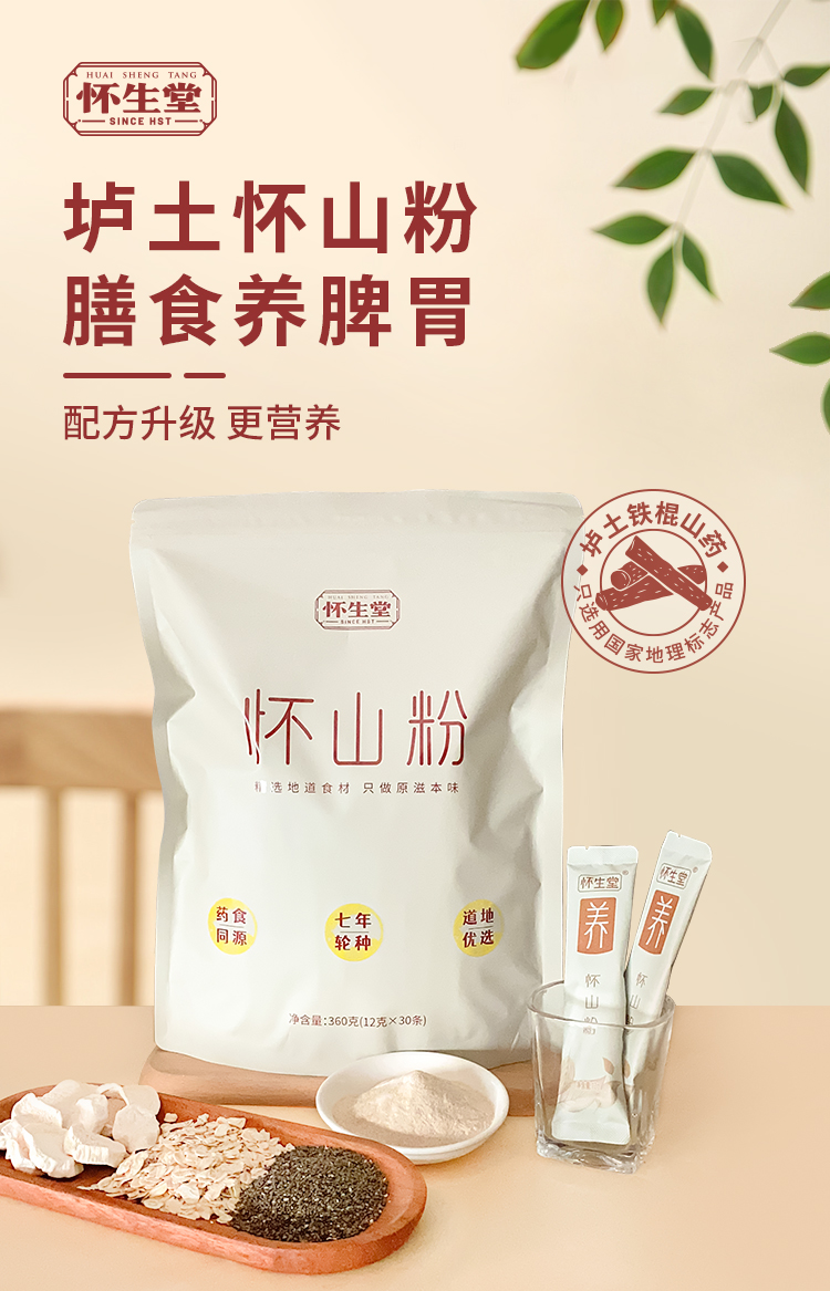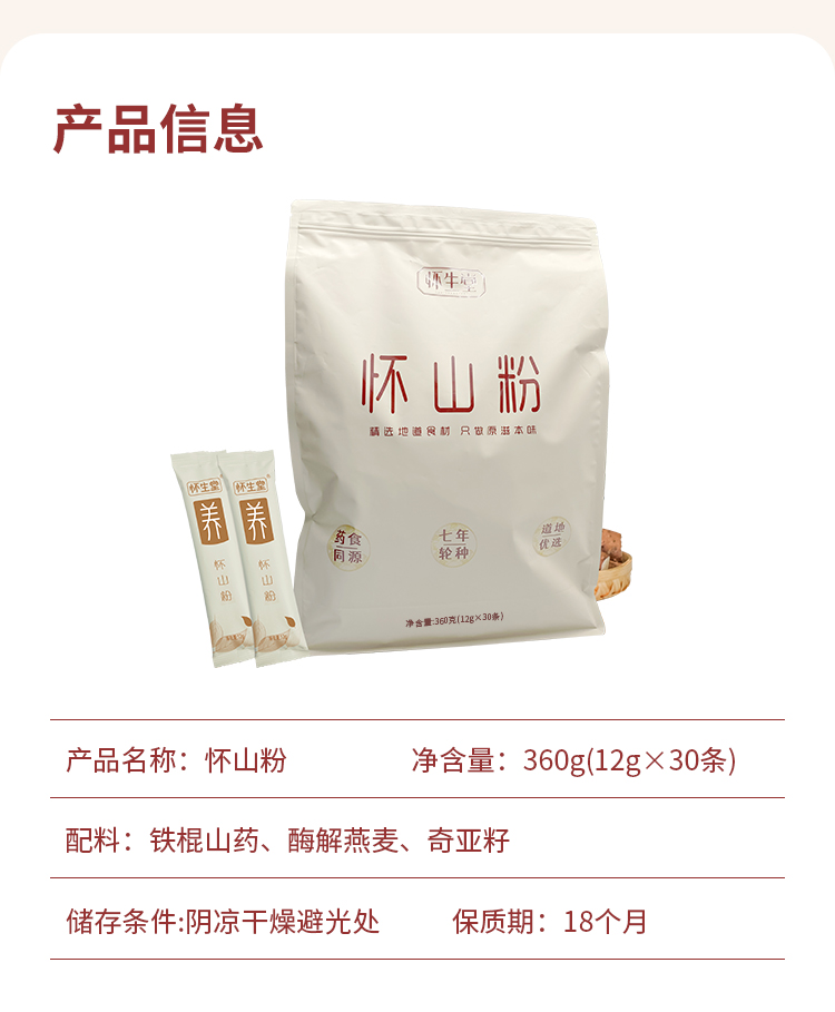 【怀生堂】垆土怀山粉精选河南焦作垆土铁棍山药,复配酶解燕麦、奇亚籽, 古法麸炒自然香 早晚一杯效果更好,每袋360克(30条装)