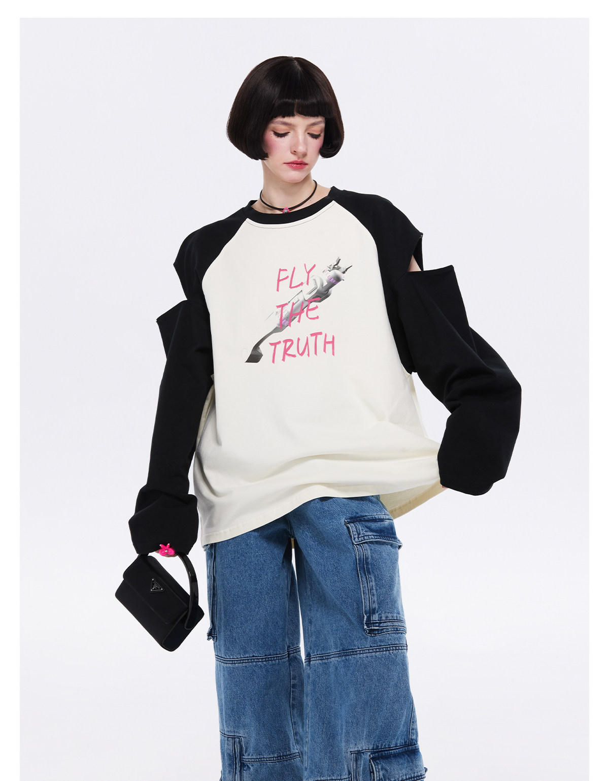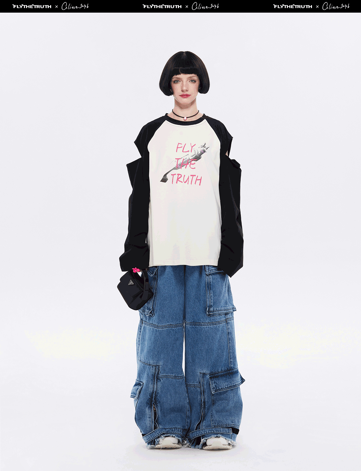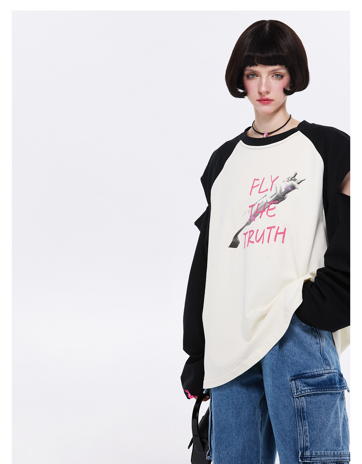 FTT FlyTheTruth『摇摇欲坠』美式长袖上衣女秋新款宽松打底衫T恤
