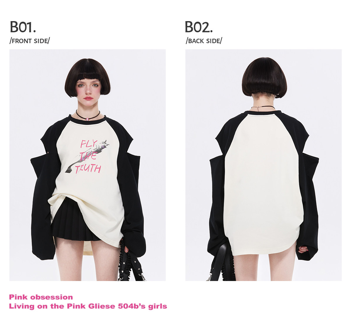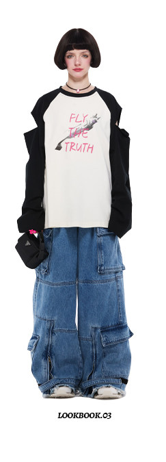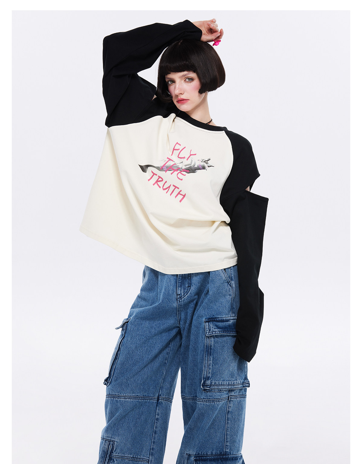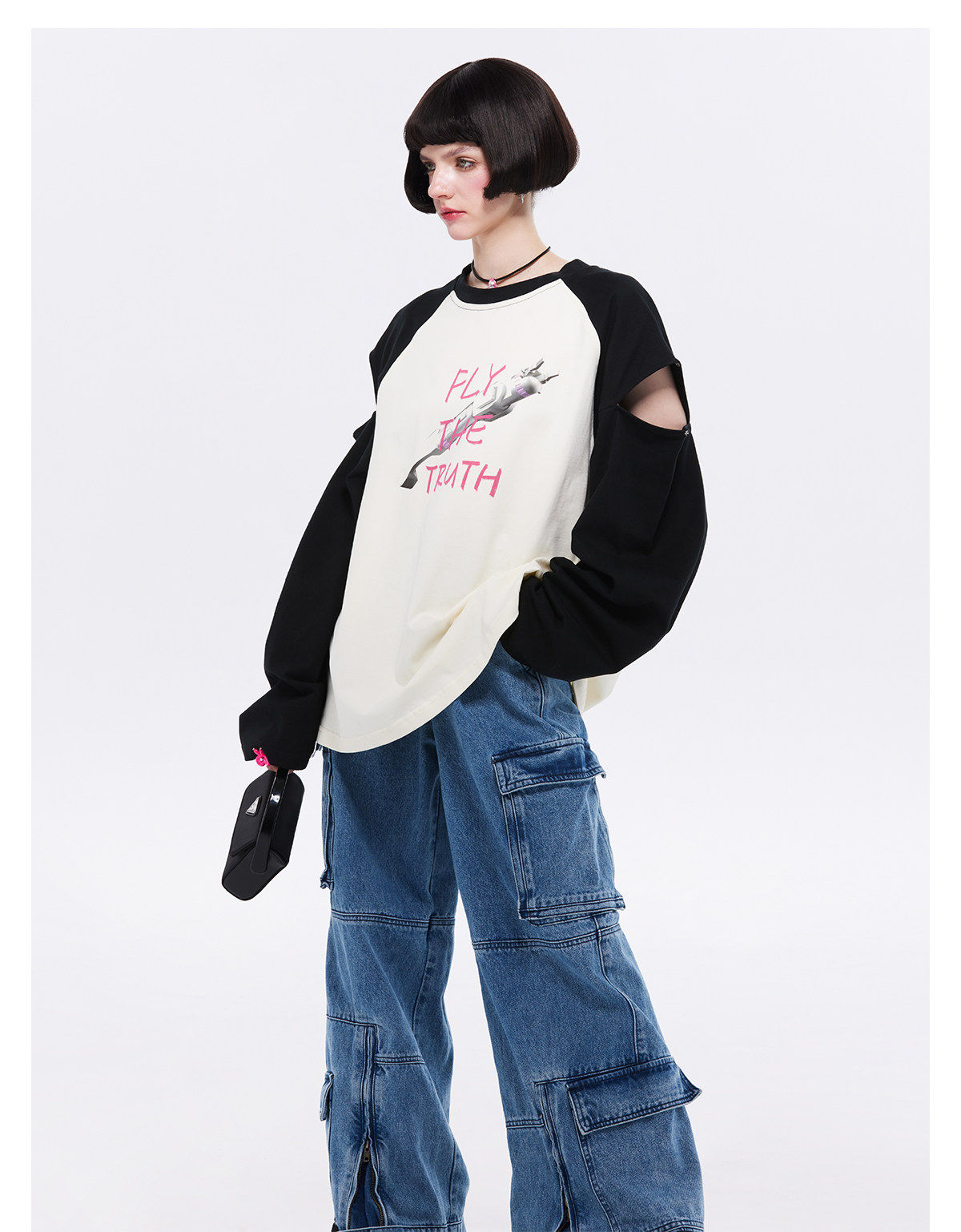 FTT FlyTheTruth『摇摇欲坠』美式长袖上衣女秋新款宽松打底衫T恤
