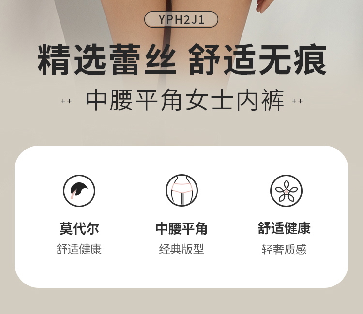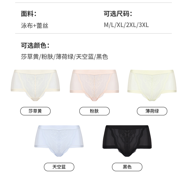 都市丽人平角内裤泳布+蕾丝宽版包覆配套内裤YPH2J1
