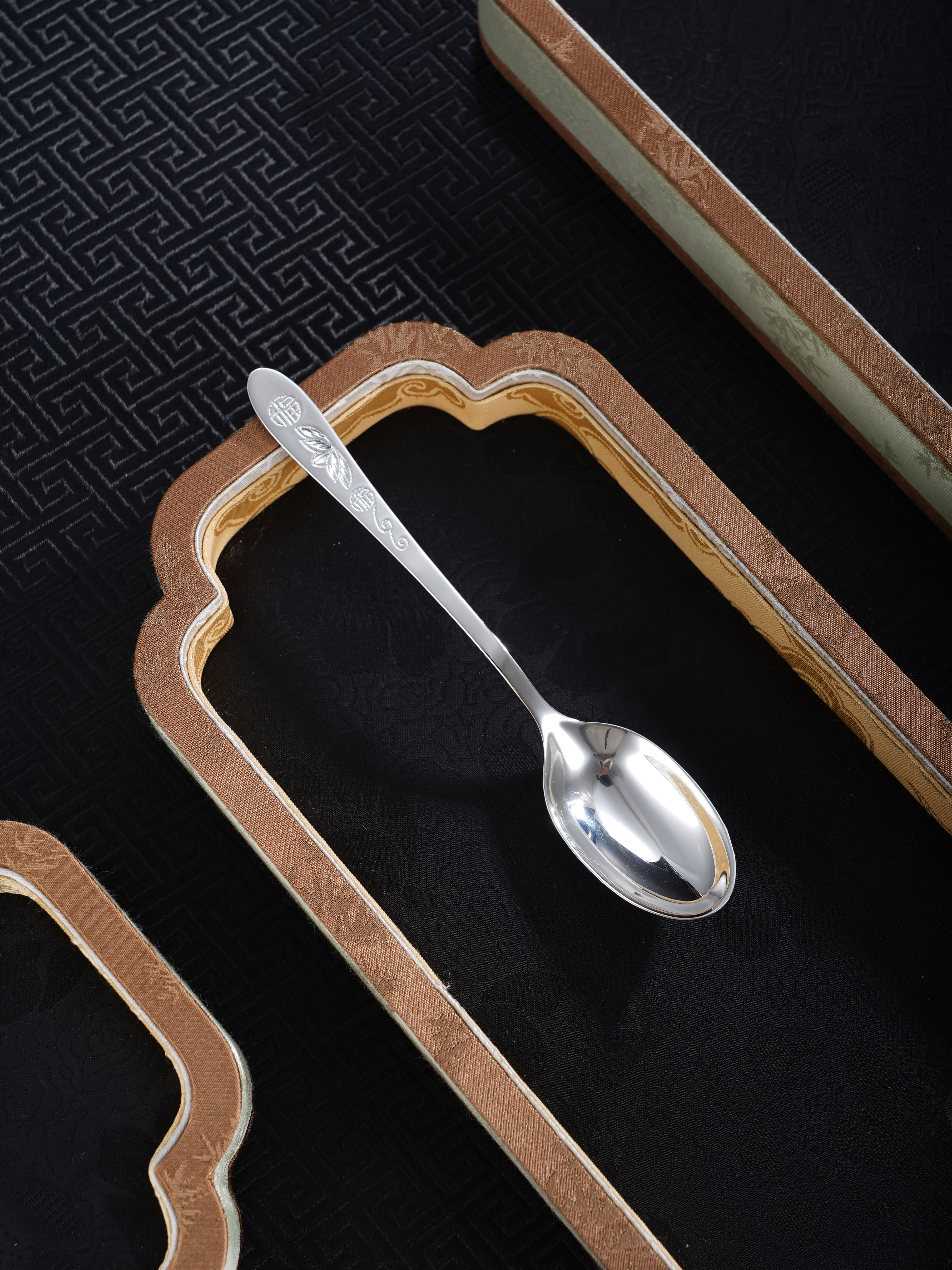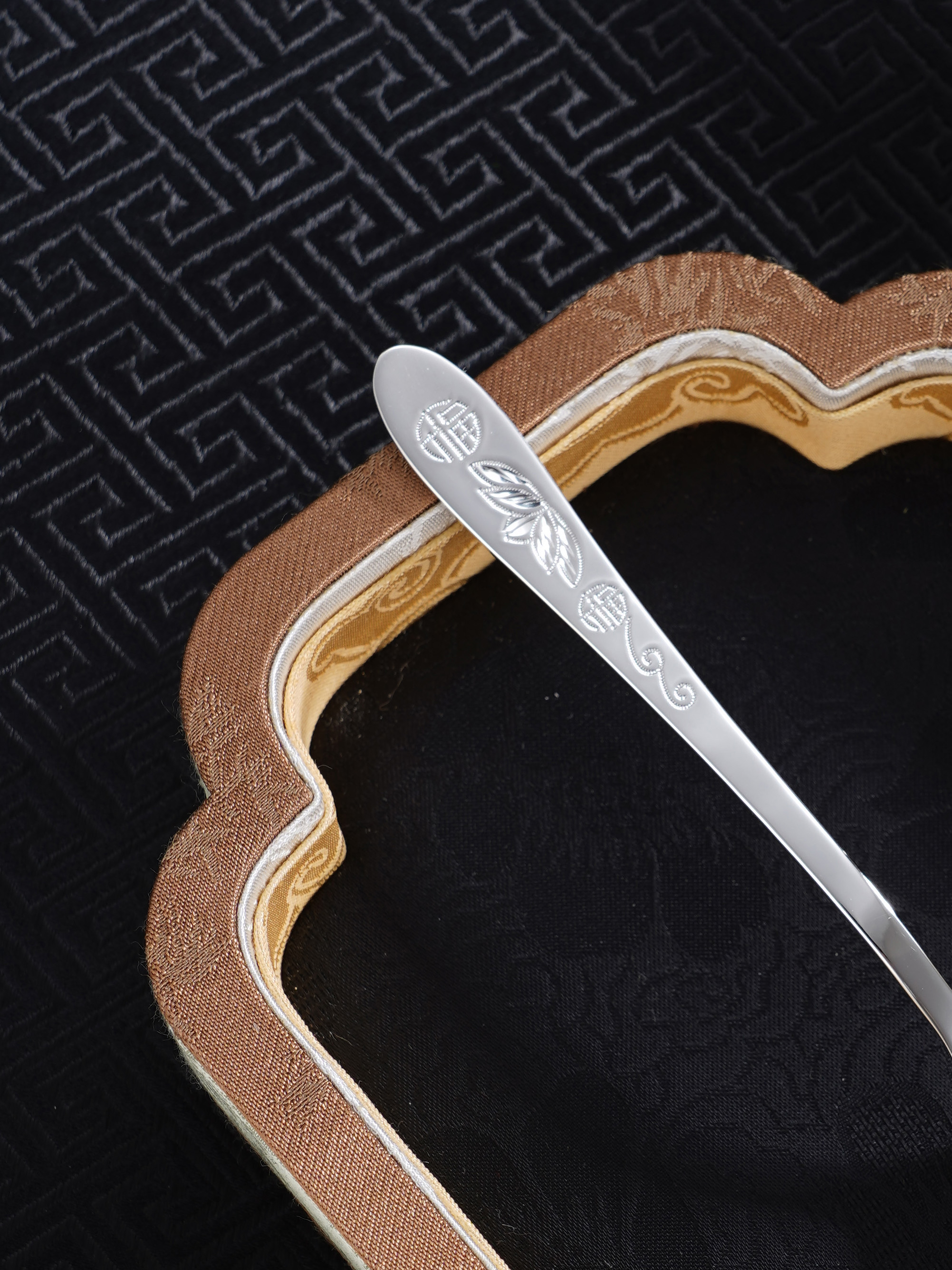 【寓意】:银勺之上雕刻福字莲花纹样,以“莲开纳福”为名,取莲花“出淤泥不染”之清雅,寄寓“福泽绵长,万事顺莲”的美好期许。