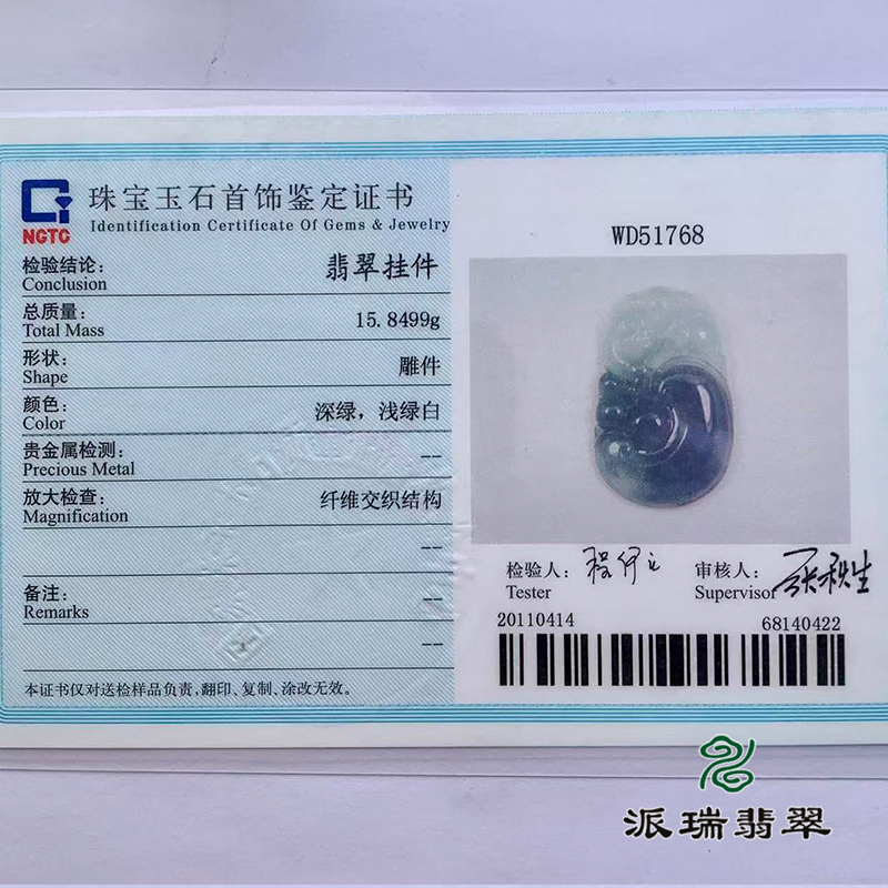 派瑞翡翠 翡翠挂件 糯种 浅绿