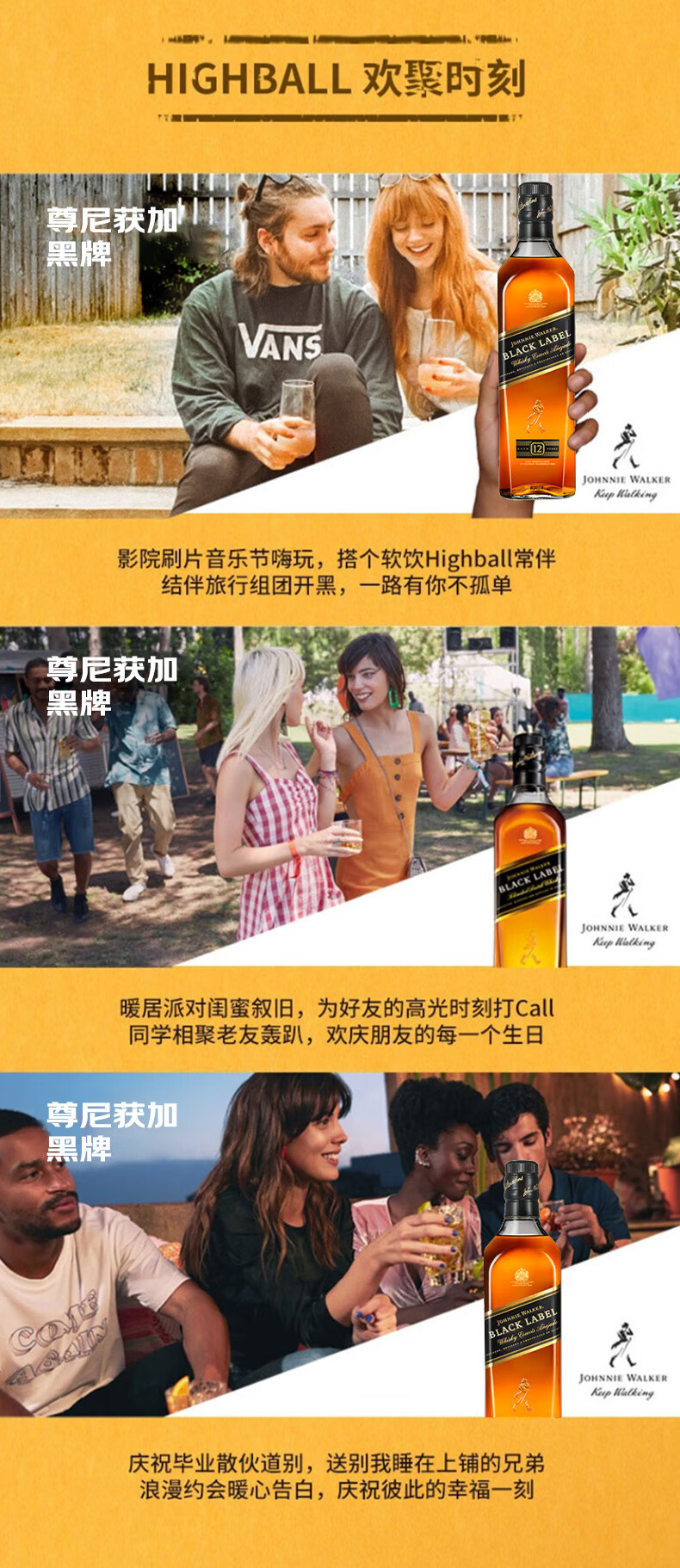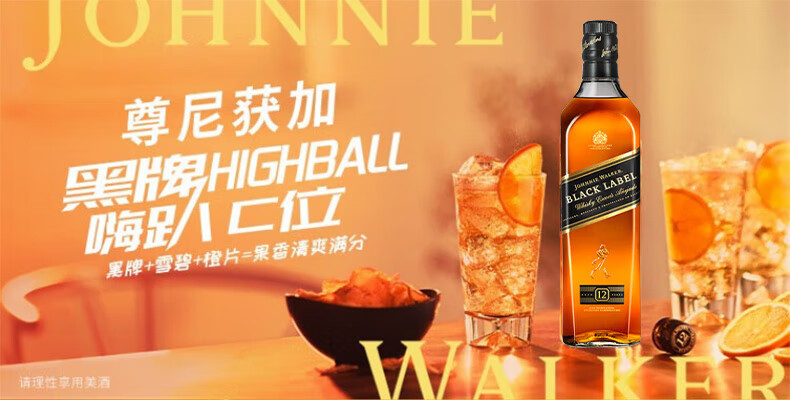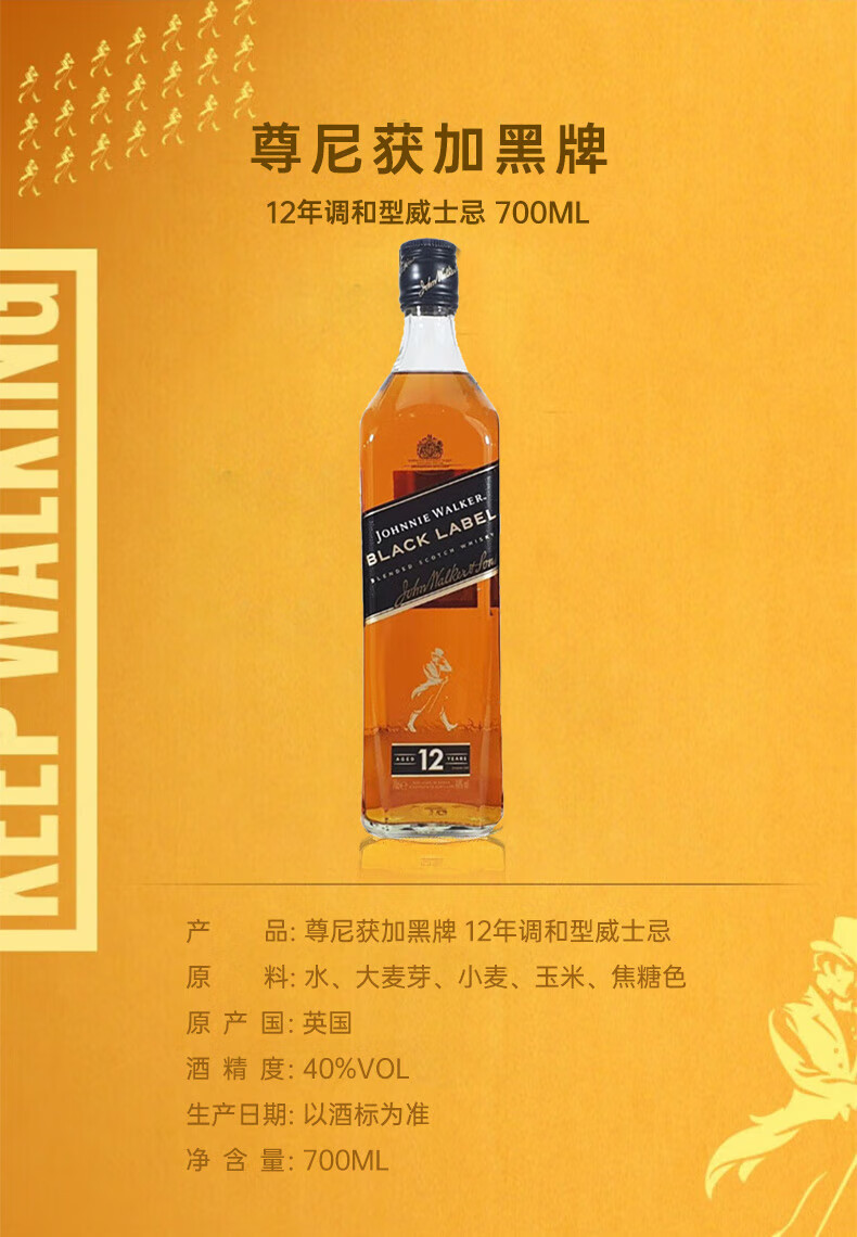 【裸瓶】尊尼获加黑牌 黑方 威士忌 700ml