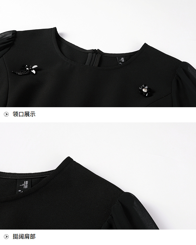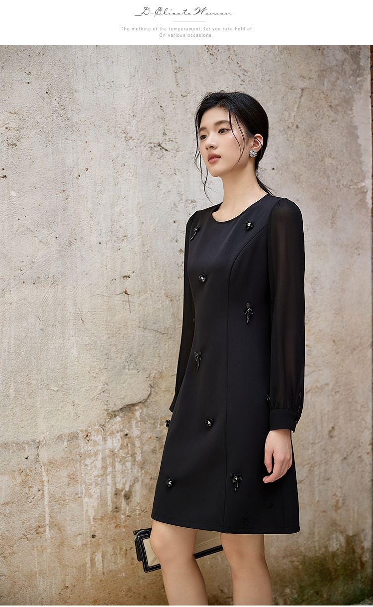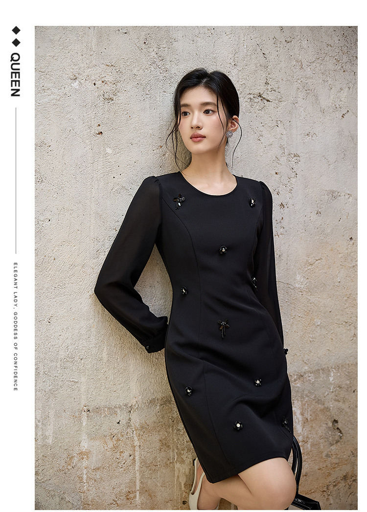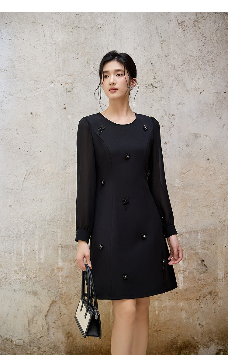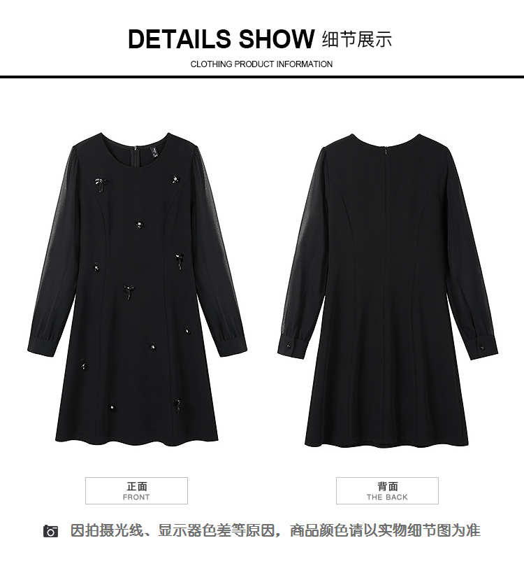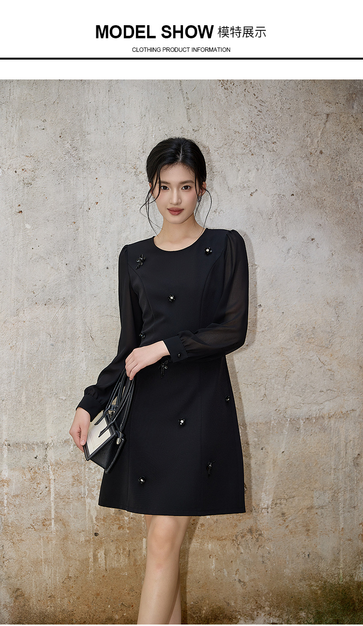 奢姿大码女装2025秋季减龄立体钉花装饰圆领连衣裙胖妹妹时尚裙子9953853635