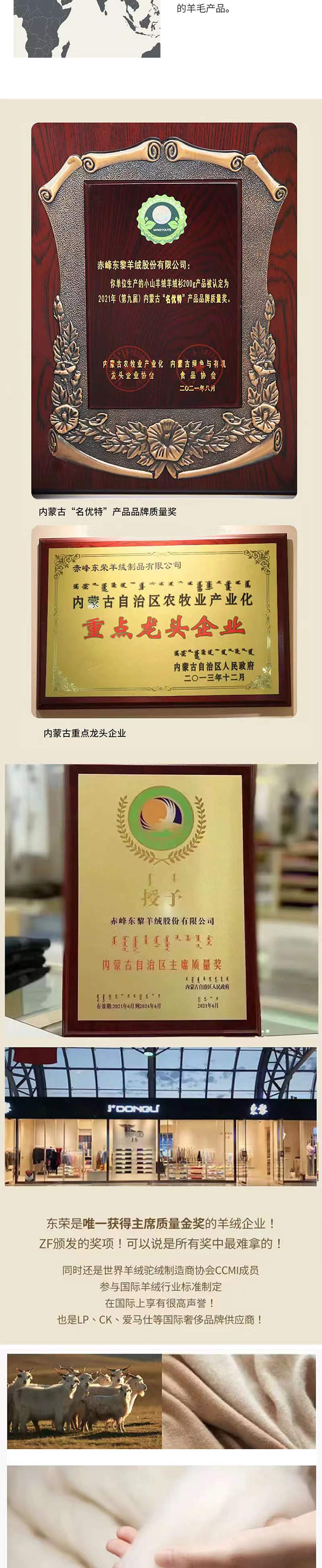 东黎羊绒是赤峰东荣集团自主品牌,自有牧场/羊绒制品全产业链优势,实现了羊绒从“牧场”到“商场”的华丽转变。