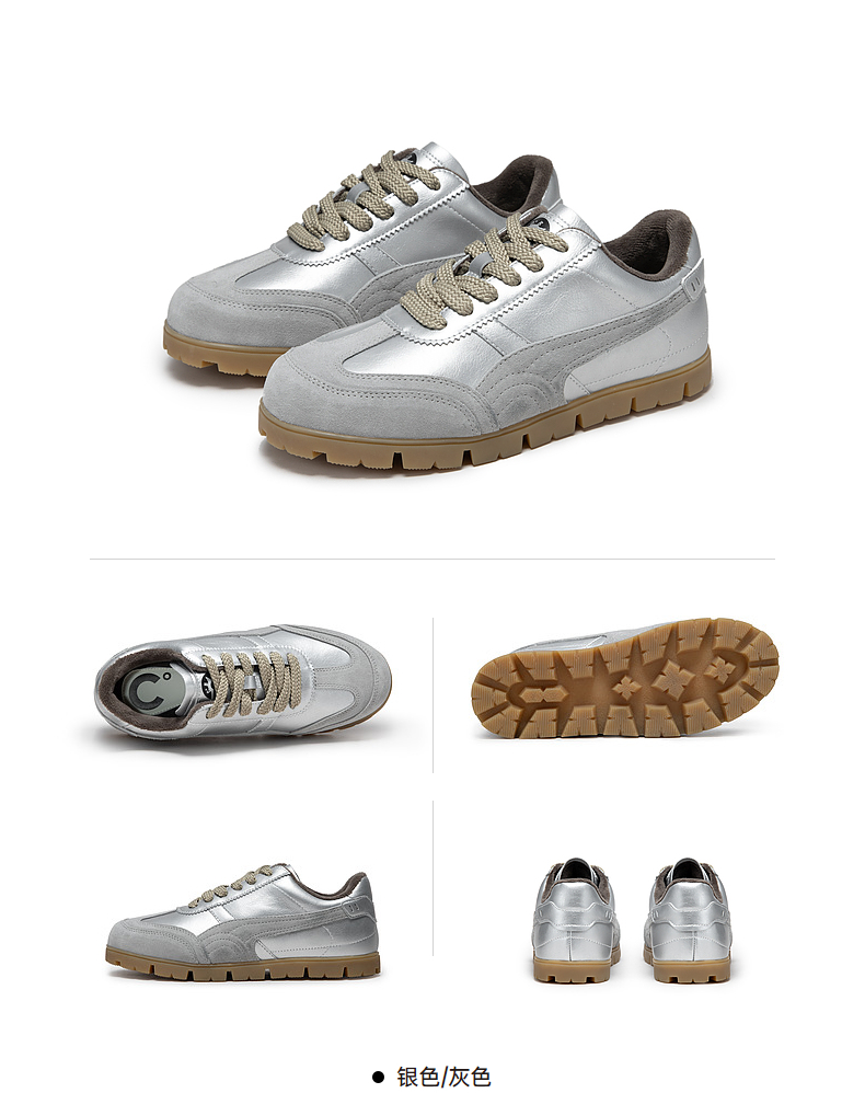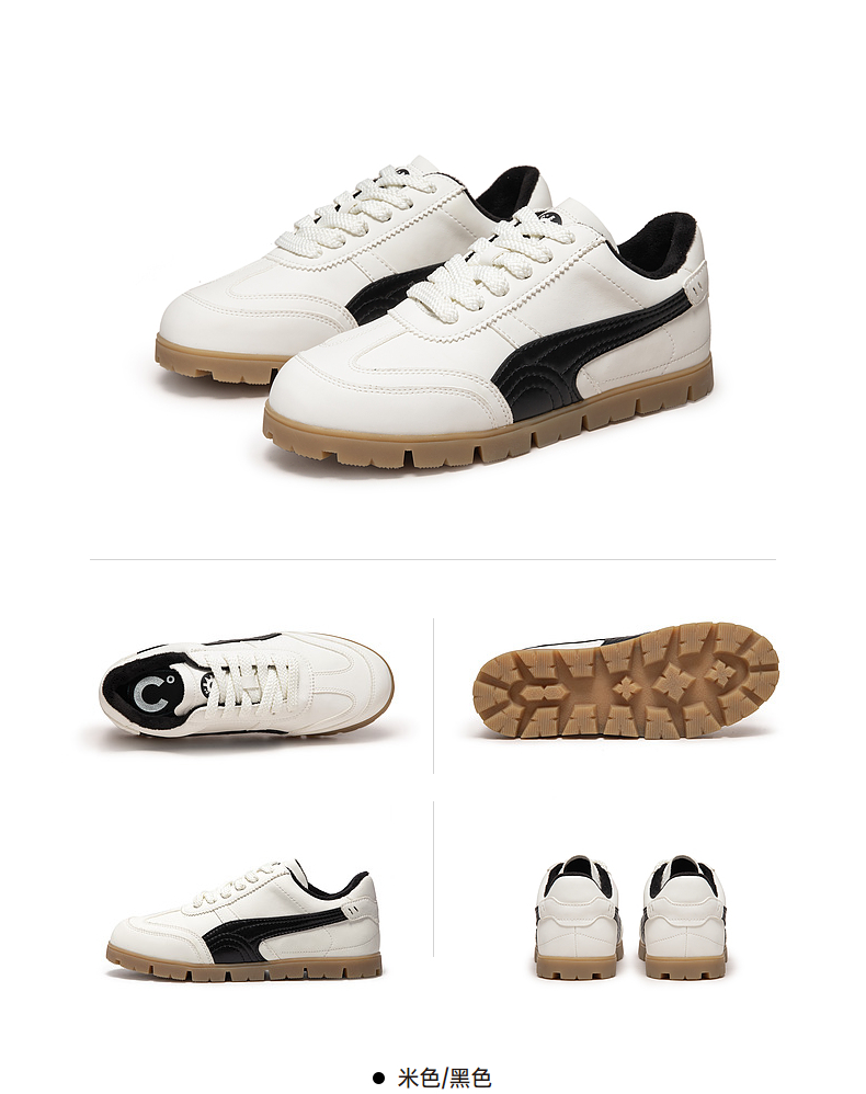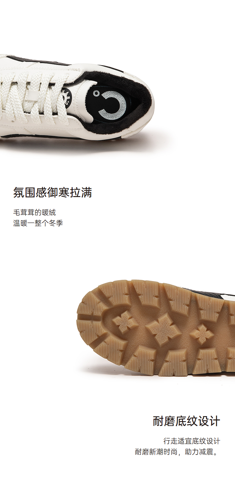 千百度加绒德训鞋女款冬季复古保暖时尚休闲鞋户外运动鞋A24622804