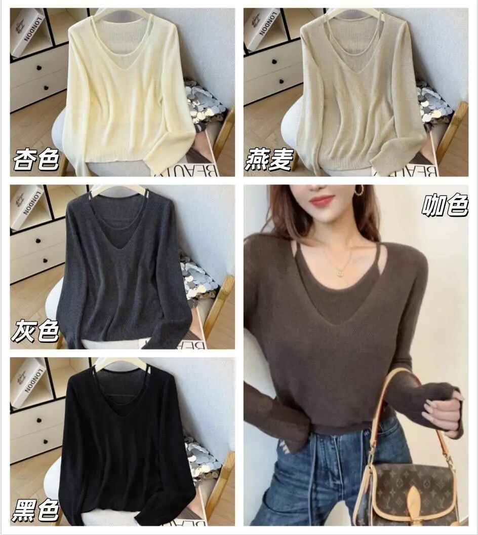假两件设计的V领针织衫,兼顾了时髦与舒适度,轻松穿出毫不费力的慵懒高级感!它巧妙地运用层次感设计,省去了层层叠穿的烦恼,既能穿出层次又不会显胖!