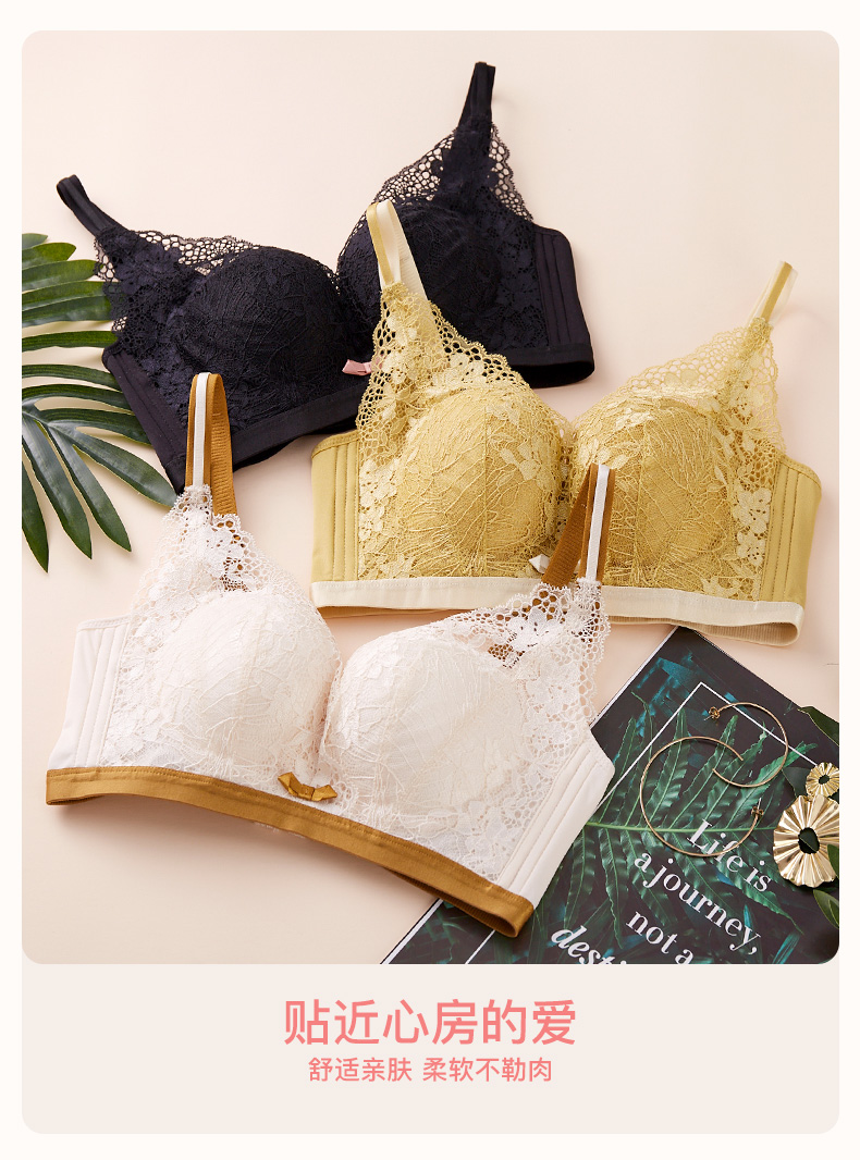 爱帝女士花卉底包边蕾丝文胸B杯型