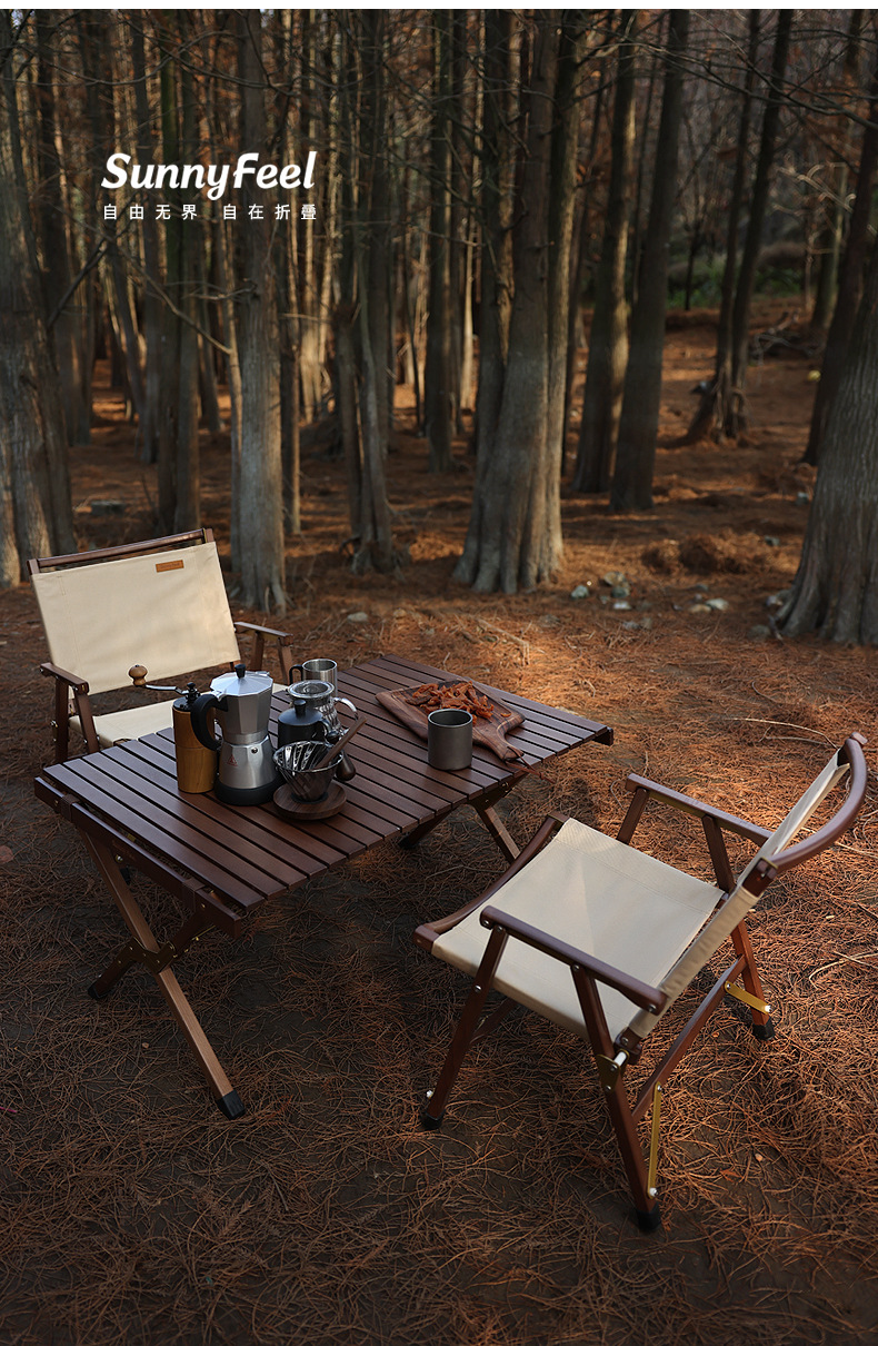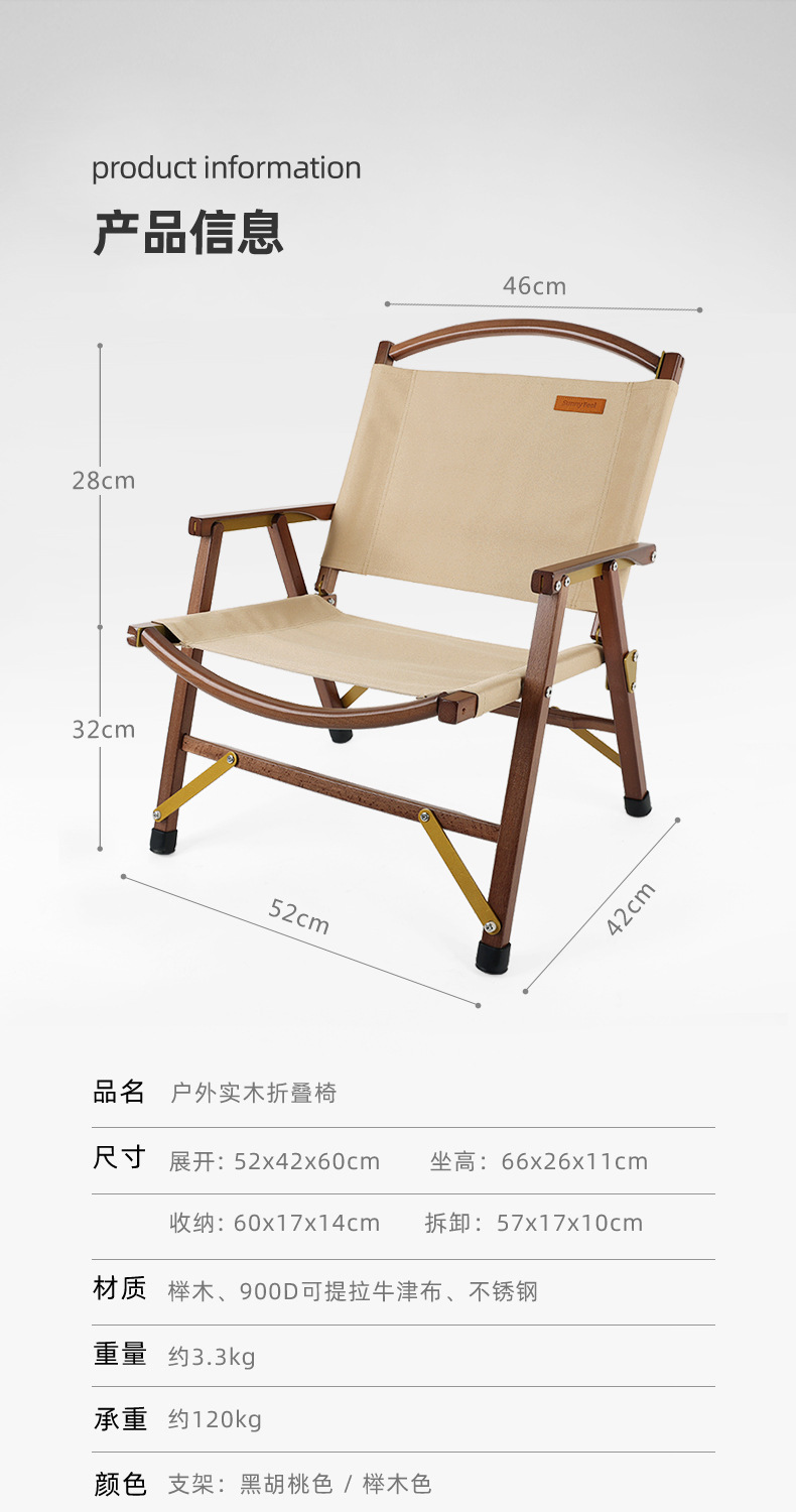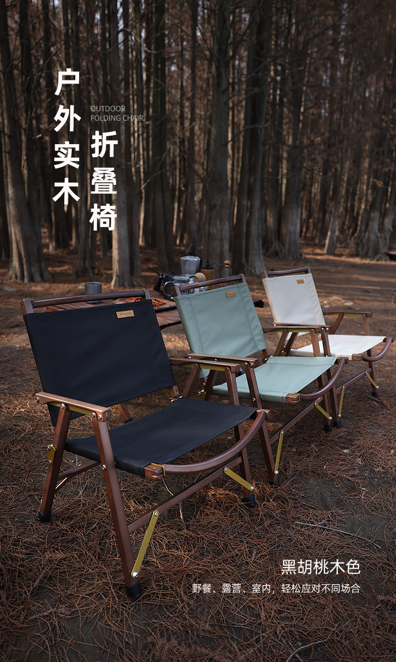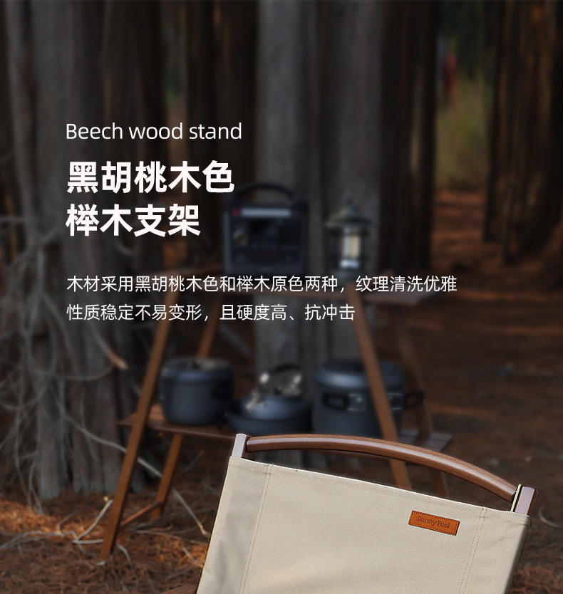 SunnyFeel山扉_户外露营克米特实木椅折叠榉木椅可拆卸黑胡桃木靠背椅