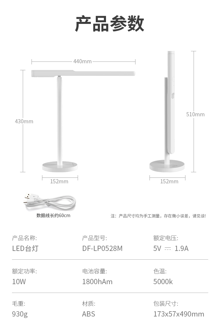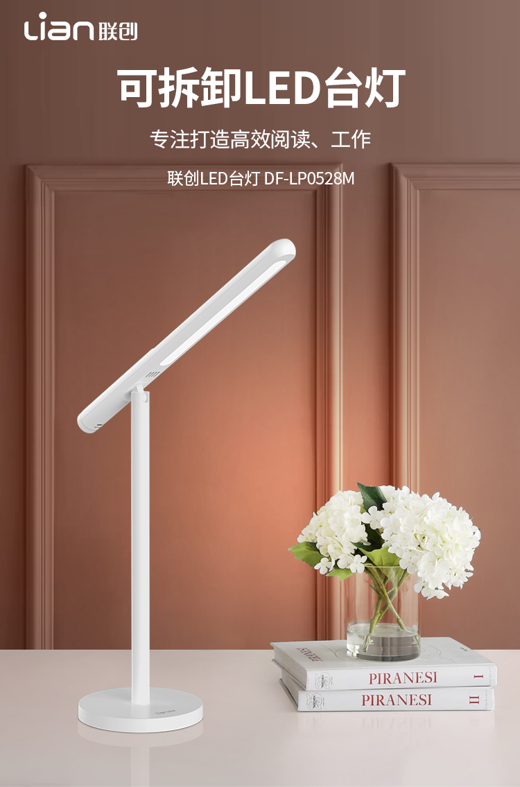 联创台灯DF-LP0528M床头学生护眼充电插电两用折叠可拆卸
