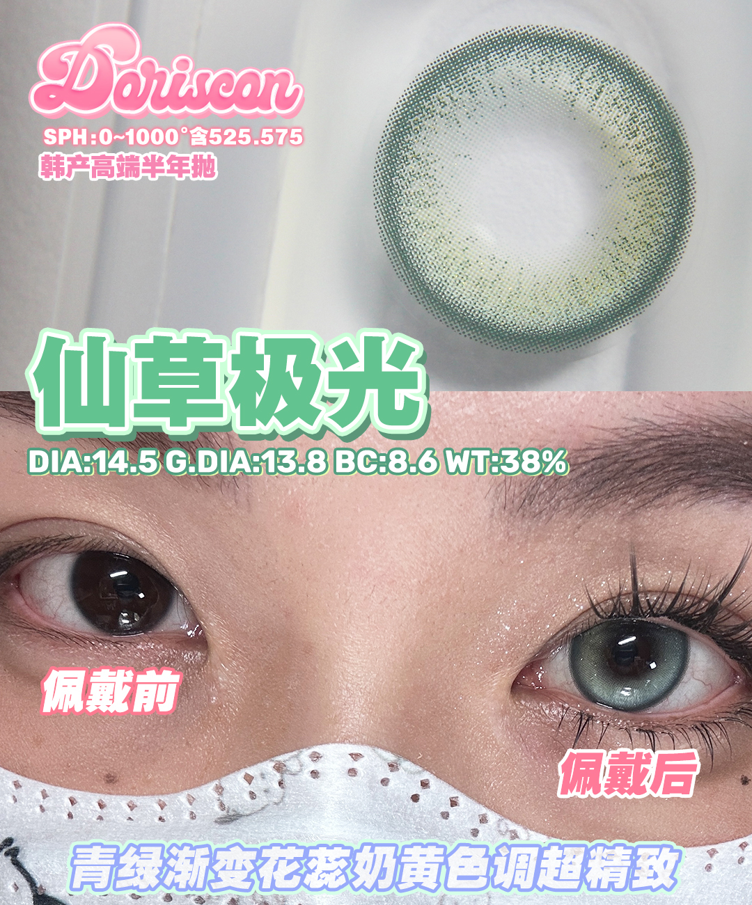 doriscon半年抛 纪元海岛/仙草极光/爆浆蜜糖/海蓝冰椰 14.5mm 蓝棕绿