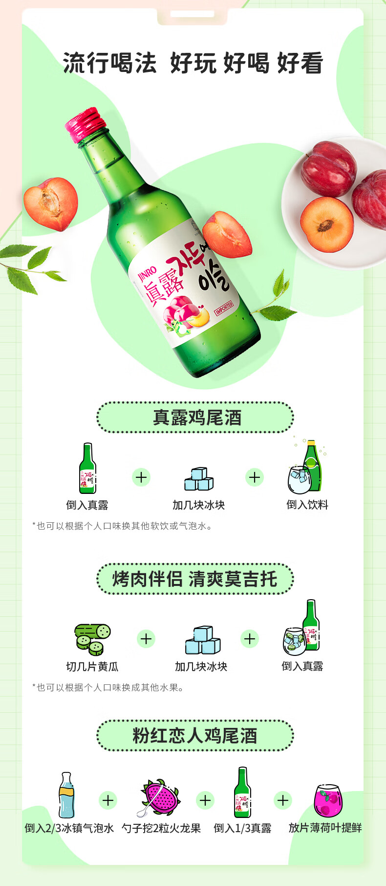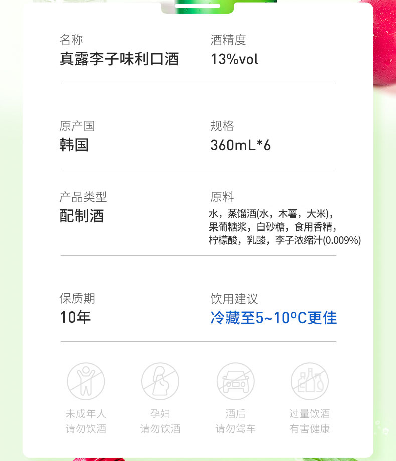 真露李子味利口酒 韩国原瓶进口 360ml 13%vol