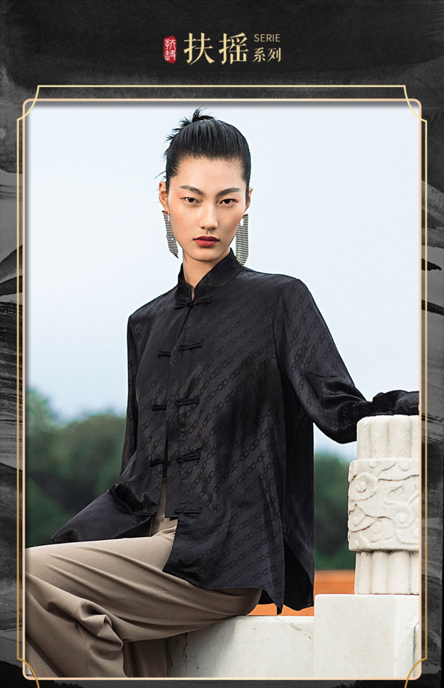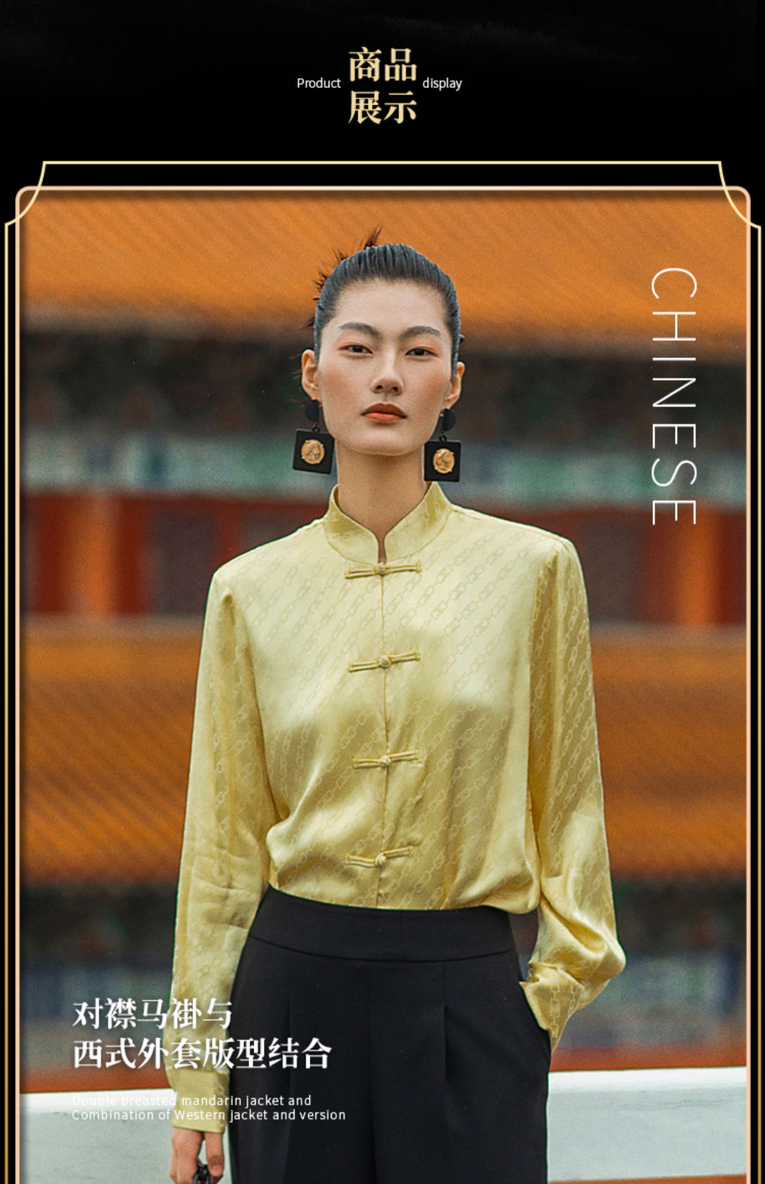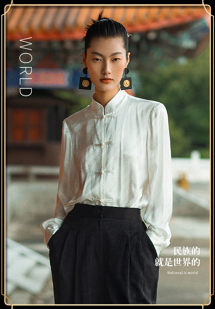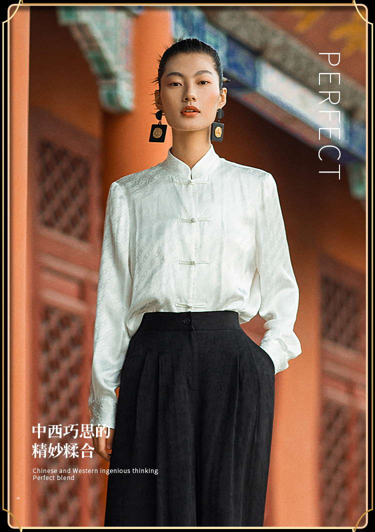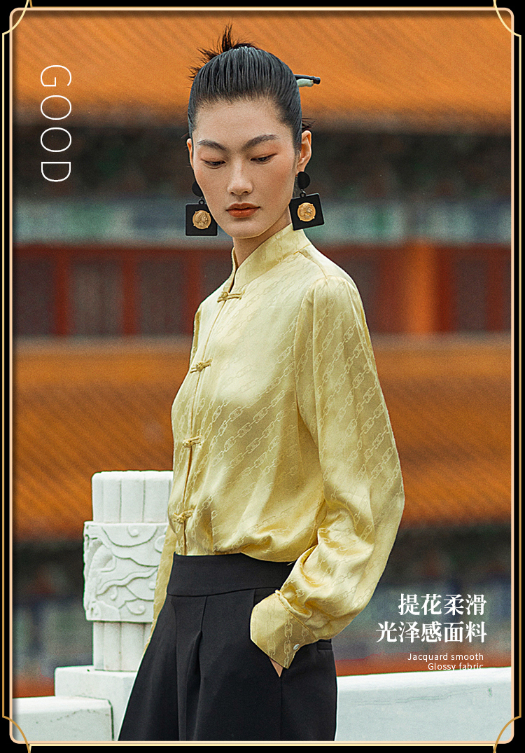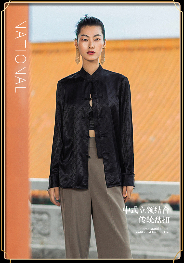 IWY/国风职业时尚西装套装衬衫对襟马褂提花中式柔滑OL213212B1