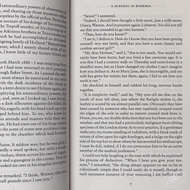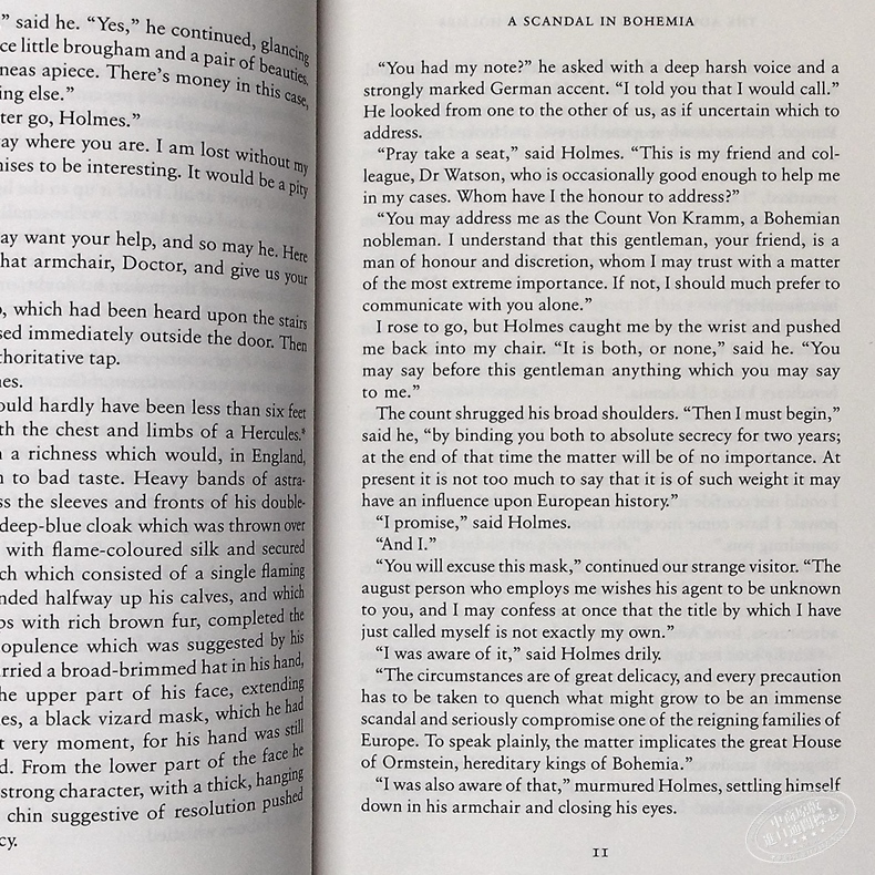 在贝克街(Baker Street)的公寓里,夏洛克·福尔摩斯(Sherlock Holmes)运用自己的推理能力,追求正义和真理,在忠实的助手华生医生(Dr Watson)的陪伴下,冒险来到了迷雾重重的维多利亚时代的伦敦。这本经典的福尔摩斯故事集包括了这位侦探最受欢迎的许多事迹:在《斑带历险记》中,福尔摩斯遇到了一条毒蛇;在《工程师的拇指历险》中,福尔摩斯被一只丢失的拇指所迷惑;在《波西米亚丑闻》中,福尔摩斯被一位美丽的歌剧演唱家所迷惑;