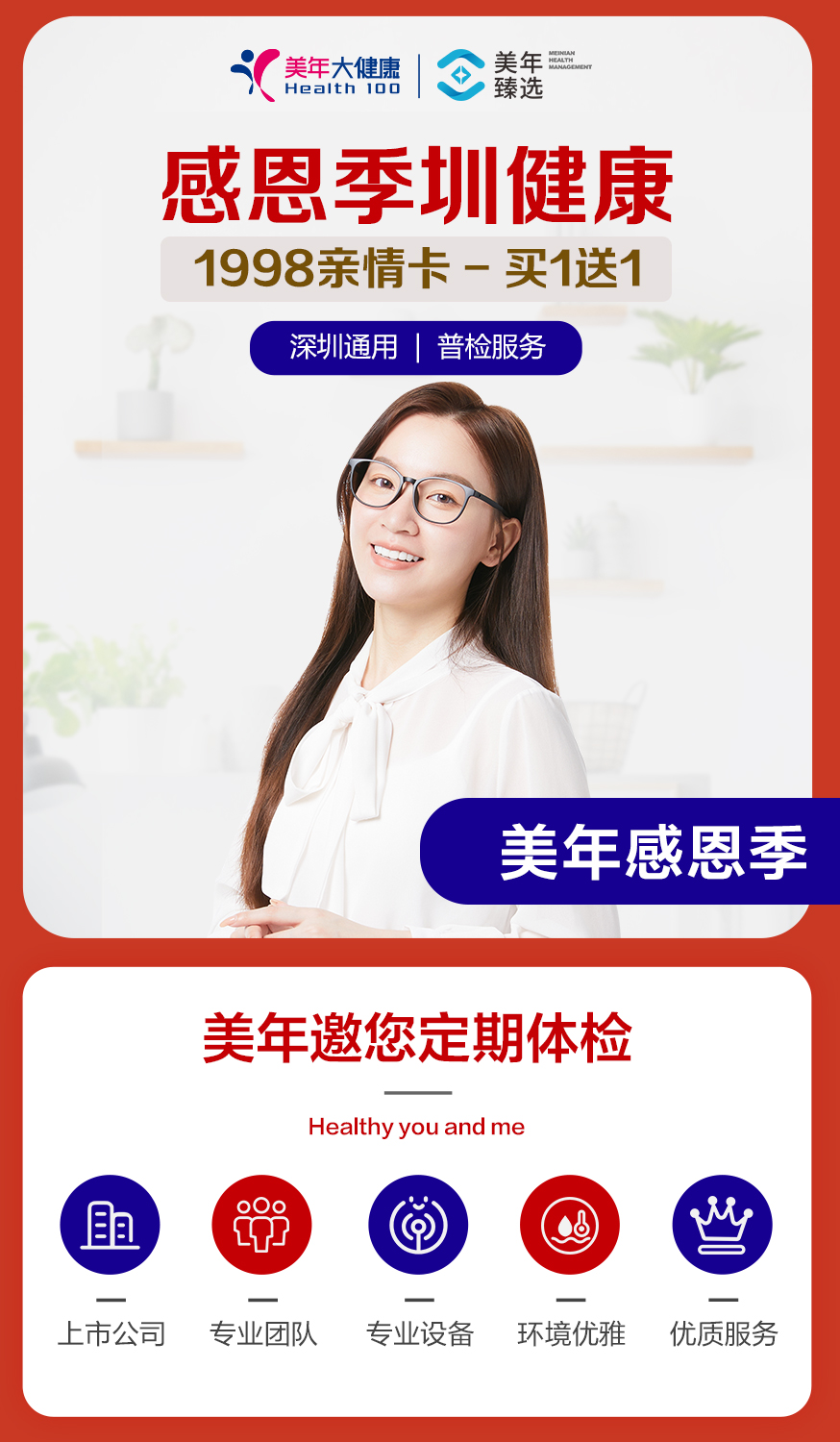 【美年大健康】感恩季 圳健康 1998亲情卡,买一送一(下单后找客服预约)
