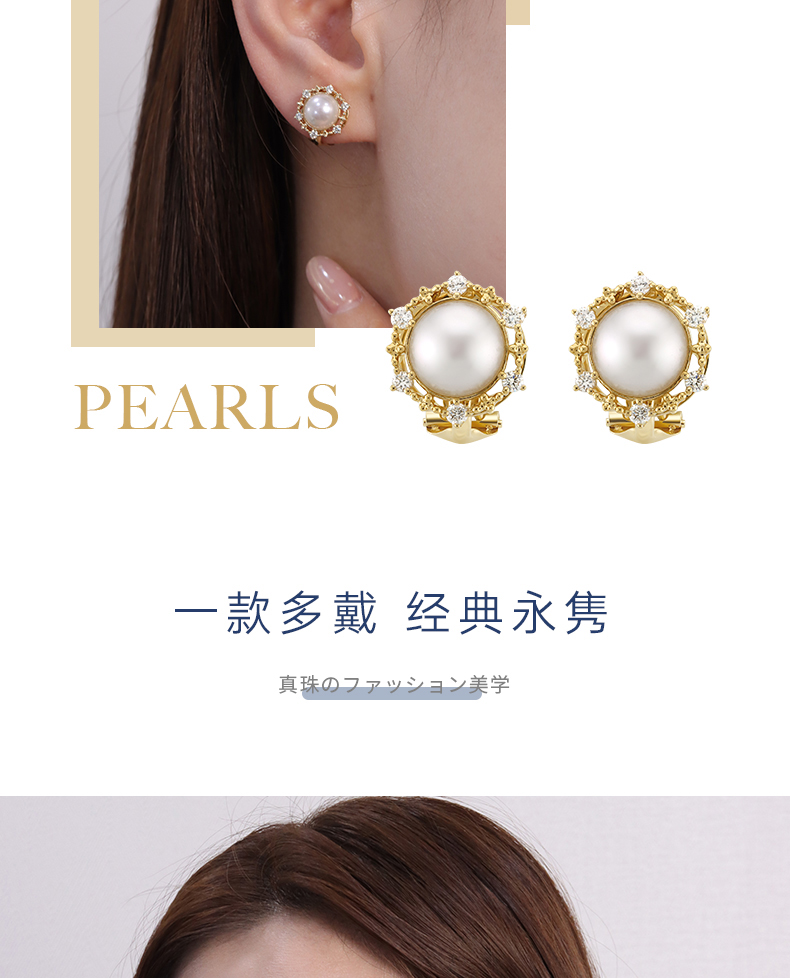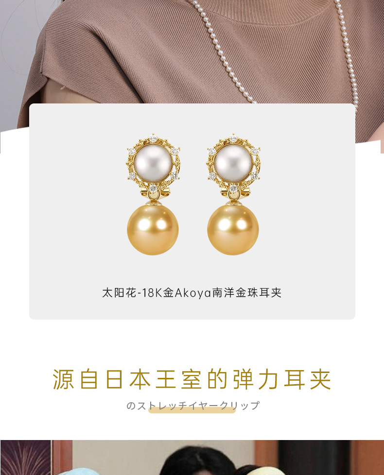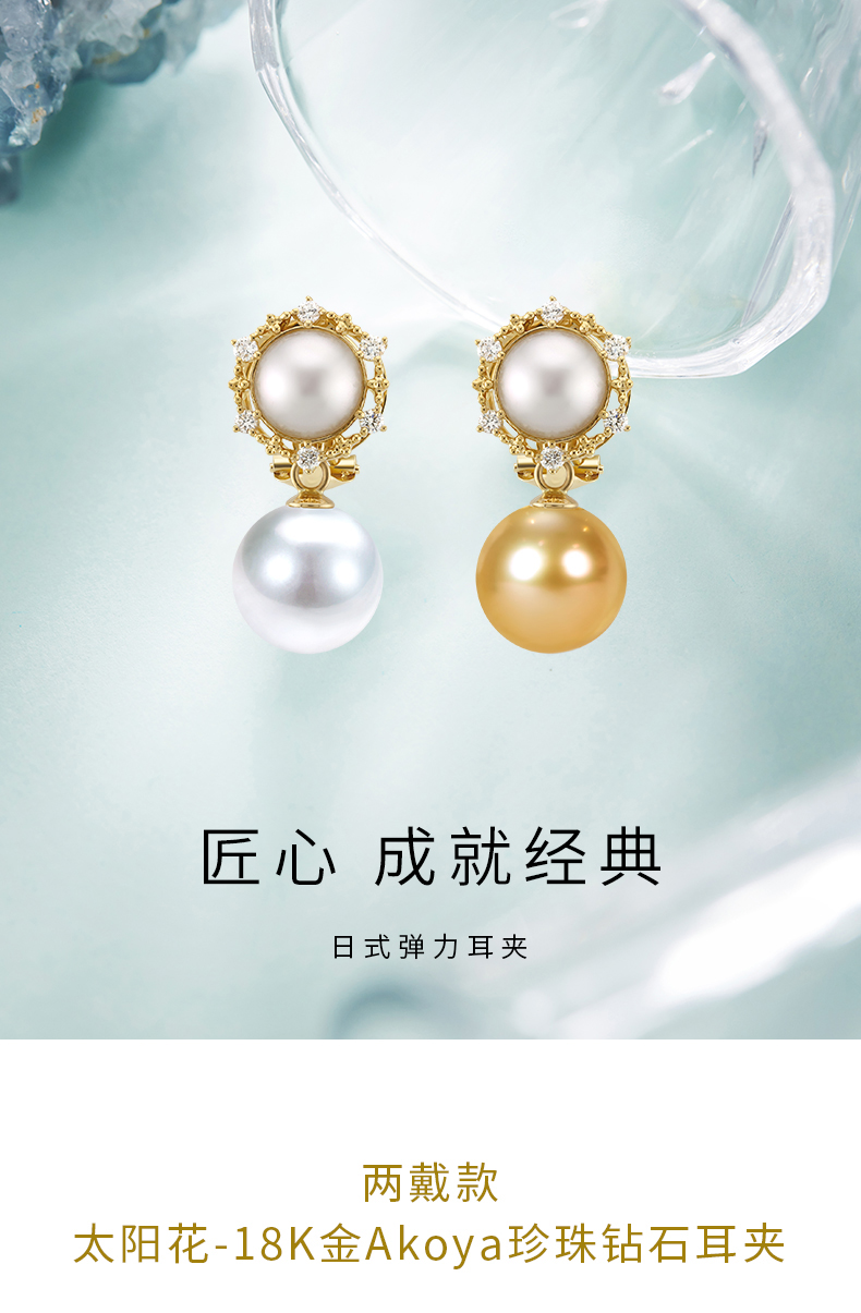 【天猫同款】两戴款 太阳花-18K金Akoya珍珠耳夹
