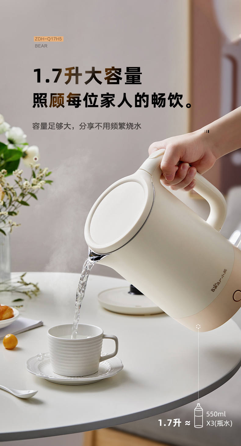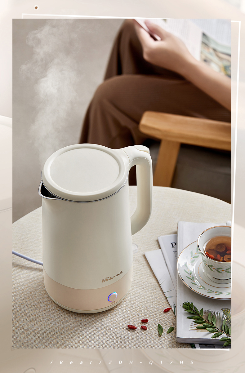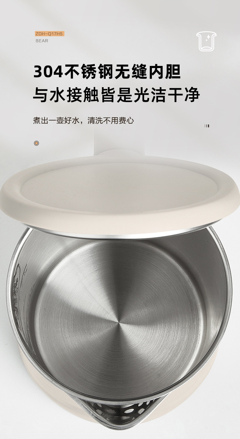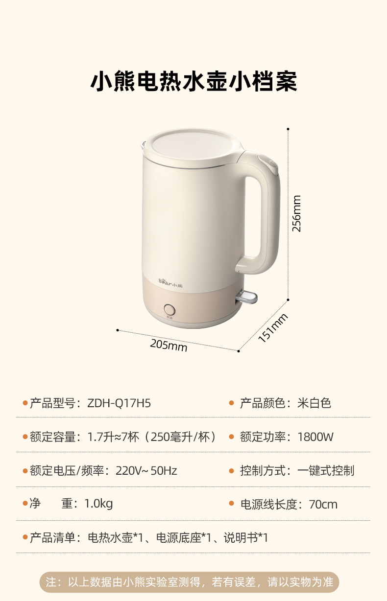 【小程序】小熊电热水壶烧水壶电热自动家用煲开水壶小型宿舍电水壶泡茶专用 ZDH-Q17H5 米白色