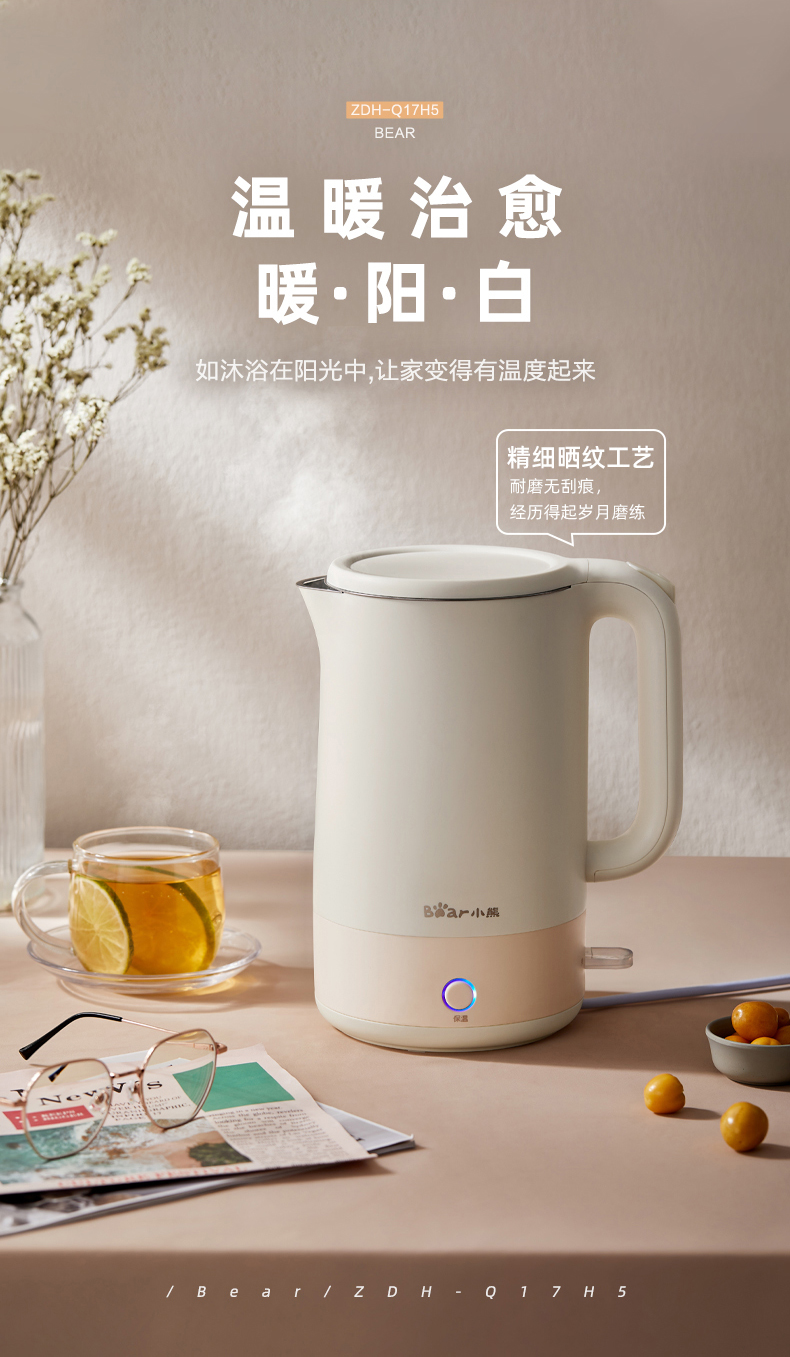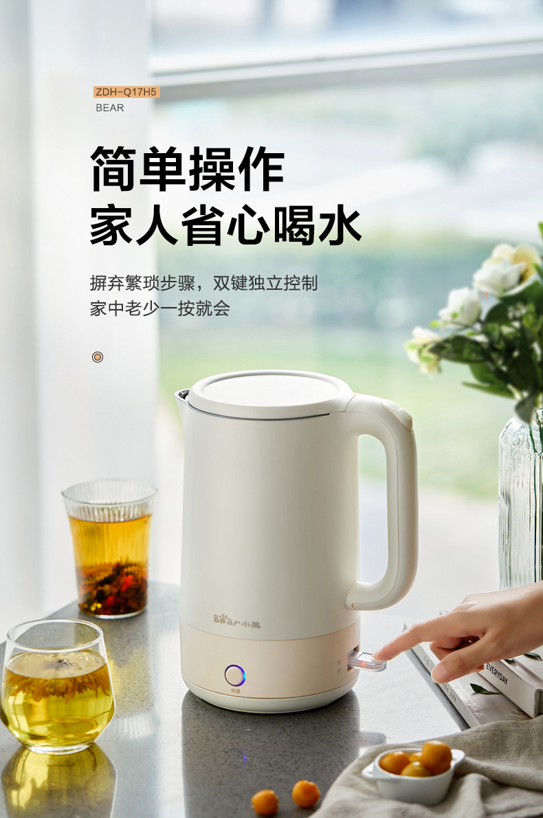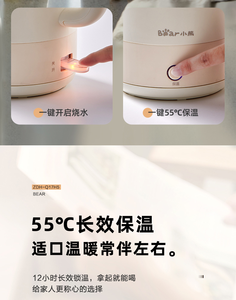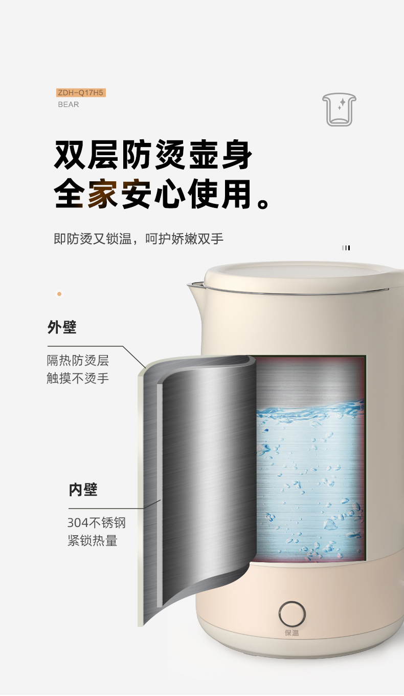 【小程序】小熊电热水壶烧水壶电热自动家用煲开水壶小型宿舍电水壶泡茶专用 ZDH-Q17H5 米白色