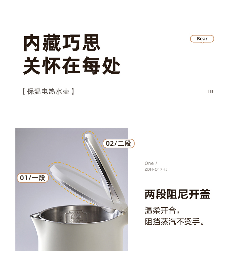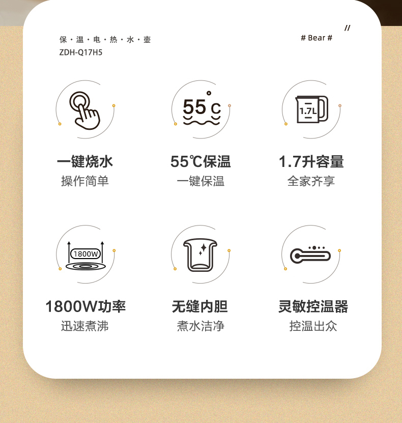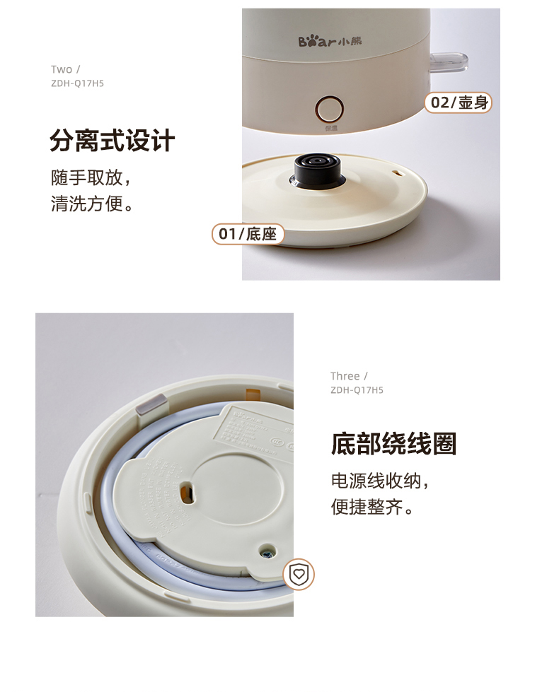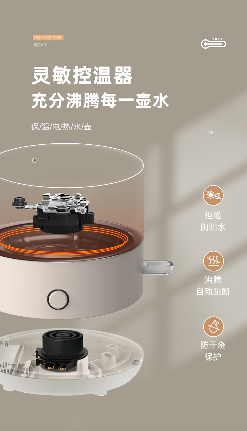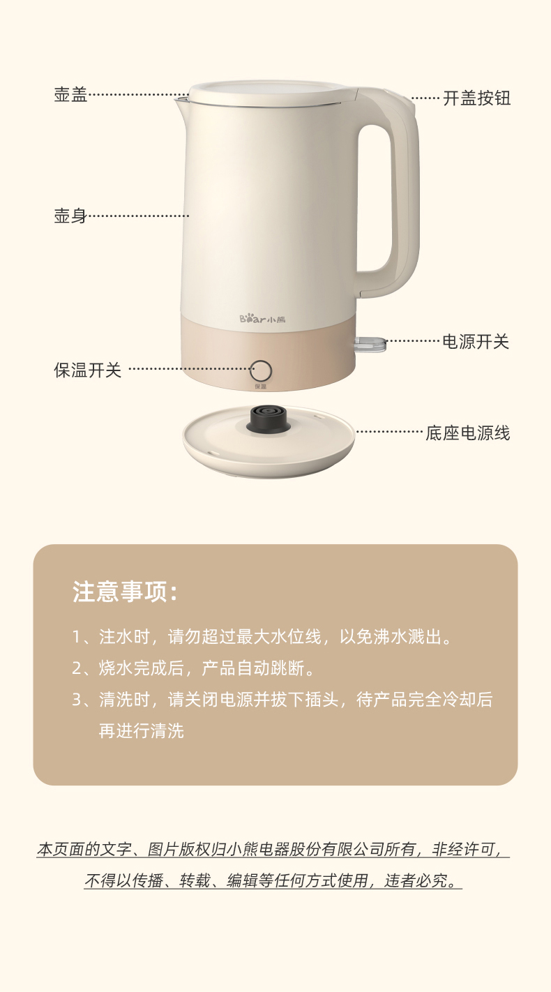【小程序】小熊电热水壶烧水壶电热自动家用煲开水壶小型宿舍电水壶泡茶专用 ZDH-Q17H5 米白色