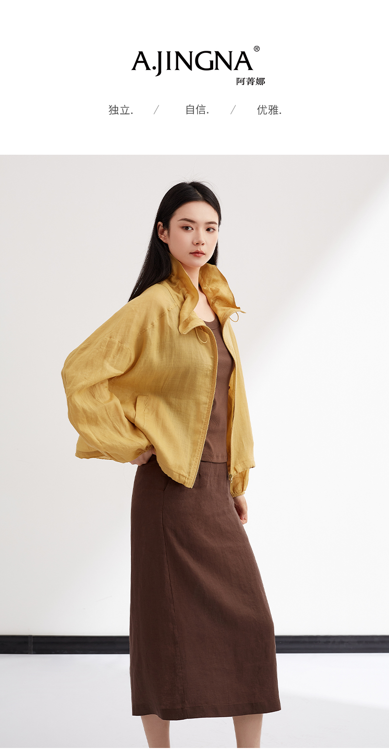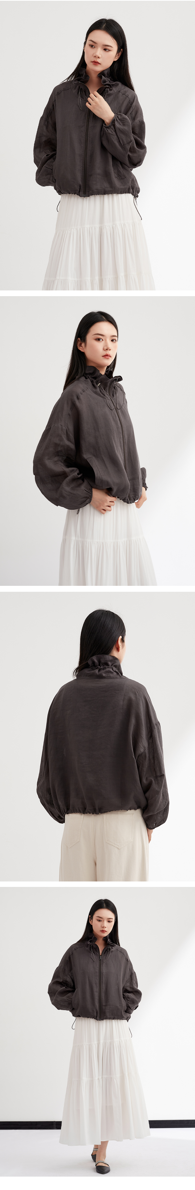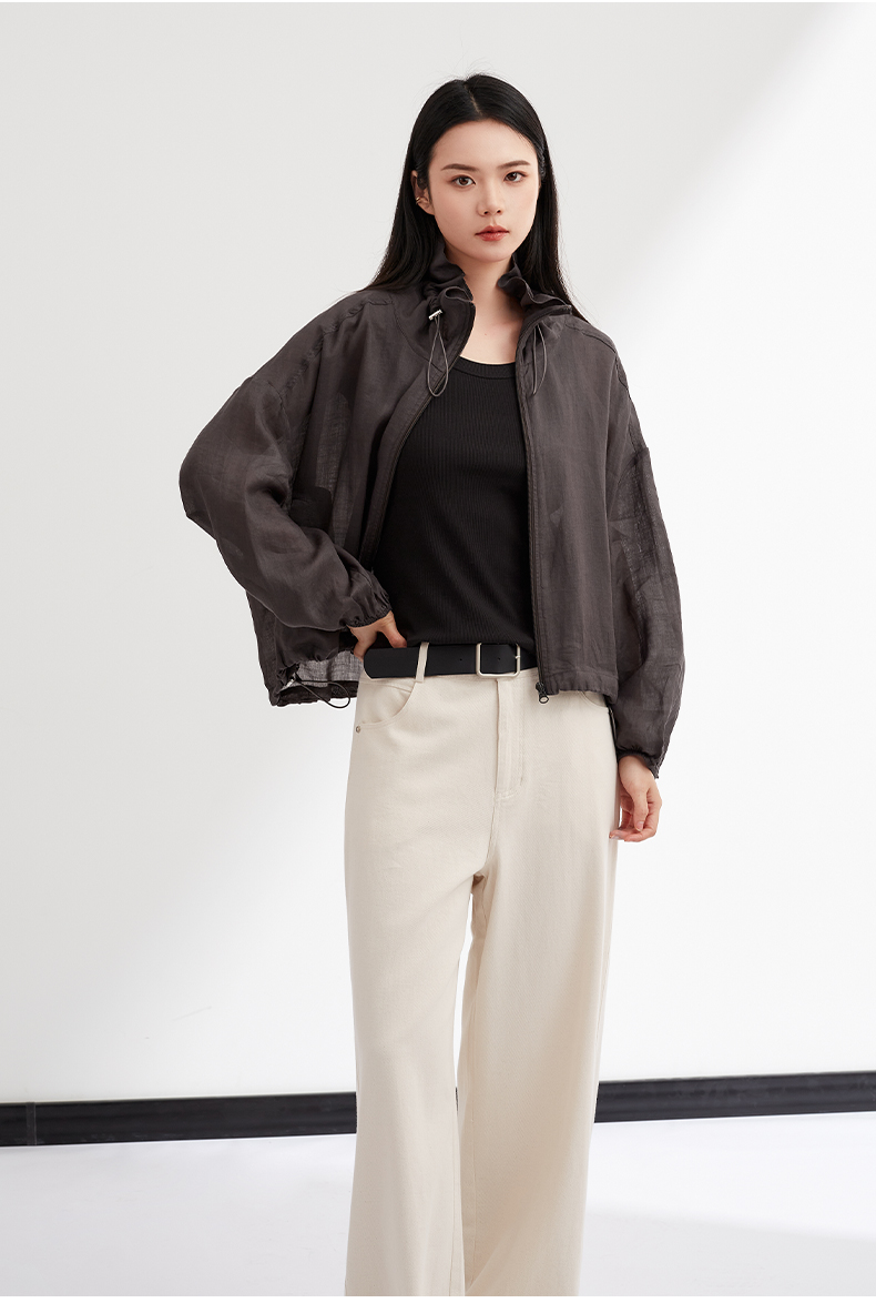 【100%苎麻】阿菁娜春夏新款刚需苎麻防晒衣立领抽绳防风轻薄松弛的户外夹克F31X207001