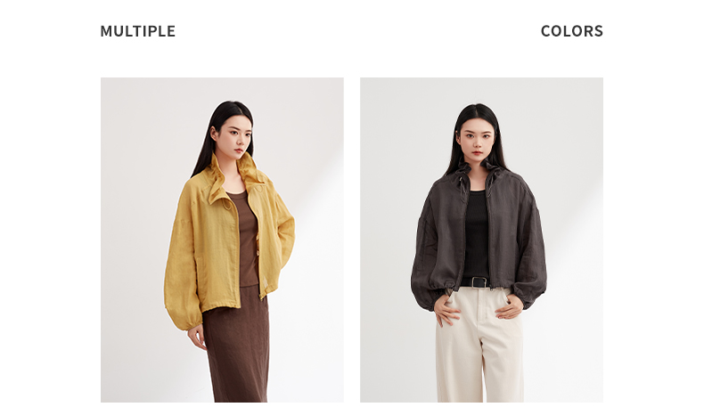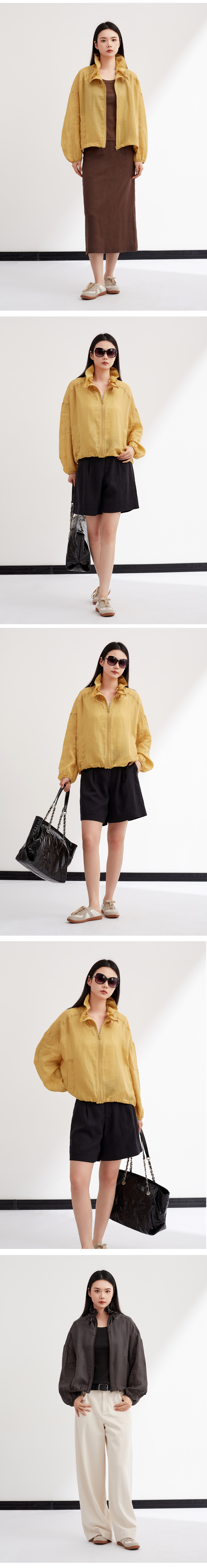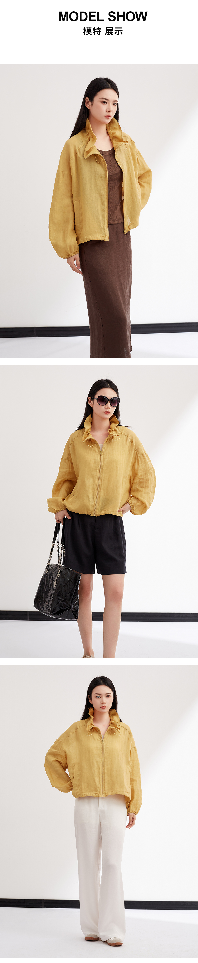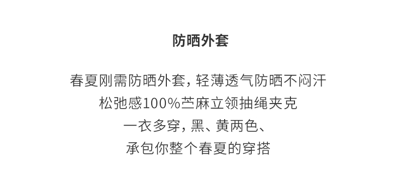 【100%苎麻】阿菁娜春夏新款刚需苎麻防晒衣立领抽绳防风轻薄松弛的户外夹克F31X207001