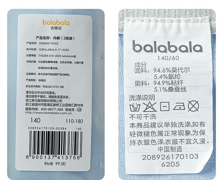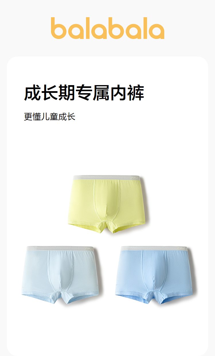巴拉巴拉男童内裤平角儿童四角短裤大童宝宝不夹PP抗菌舒适三条装