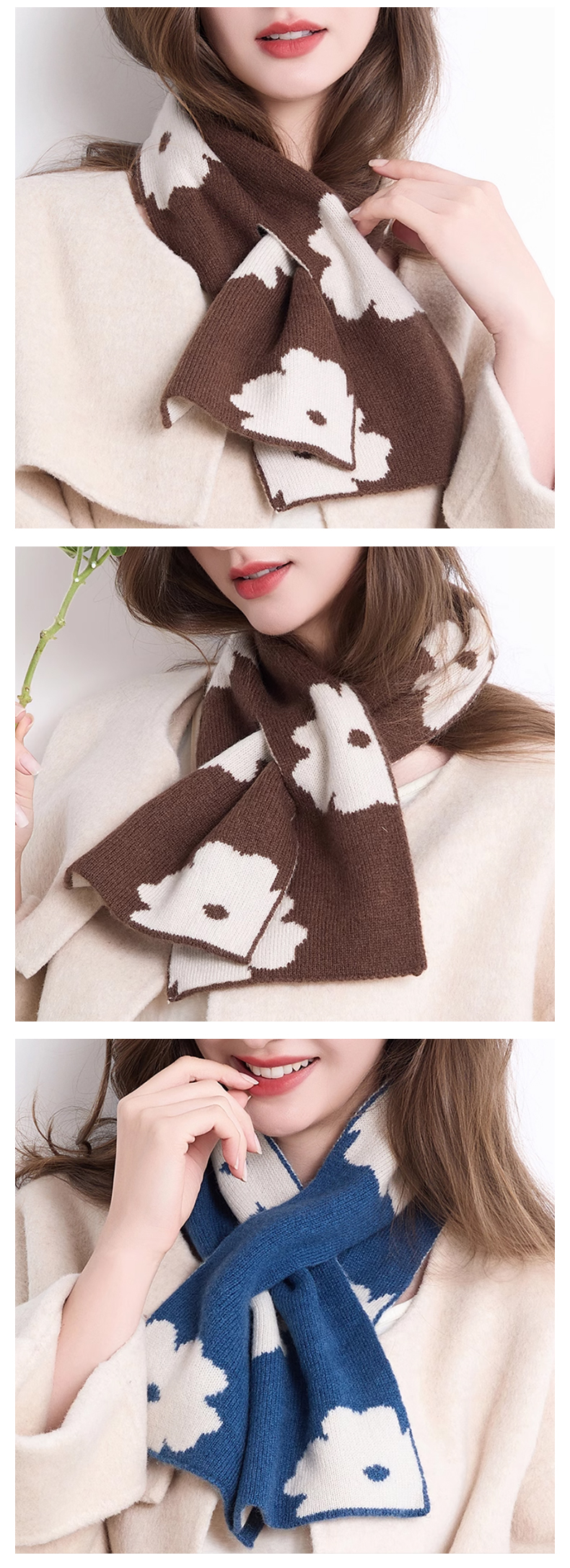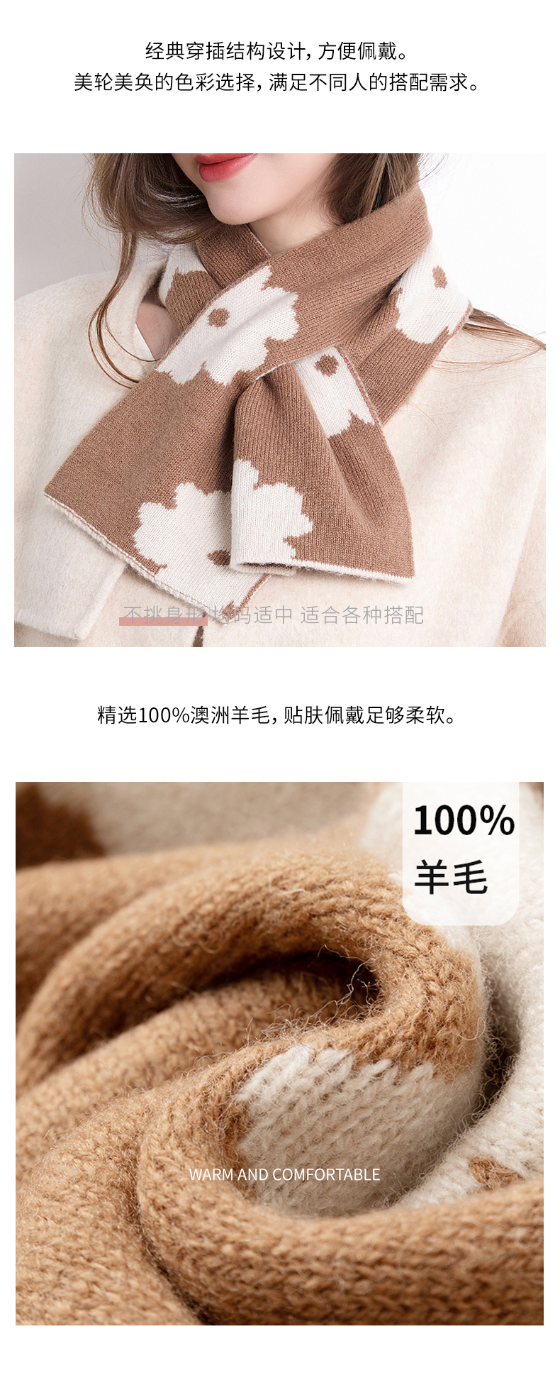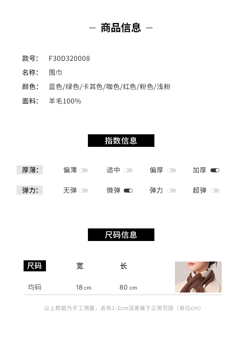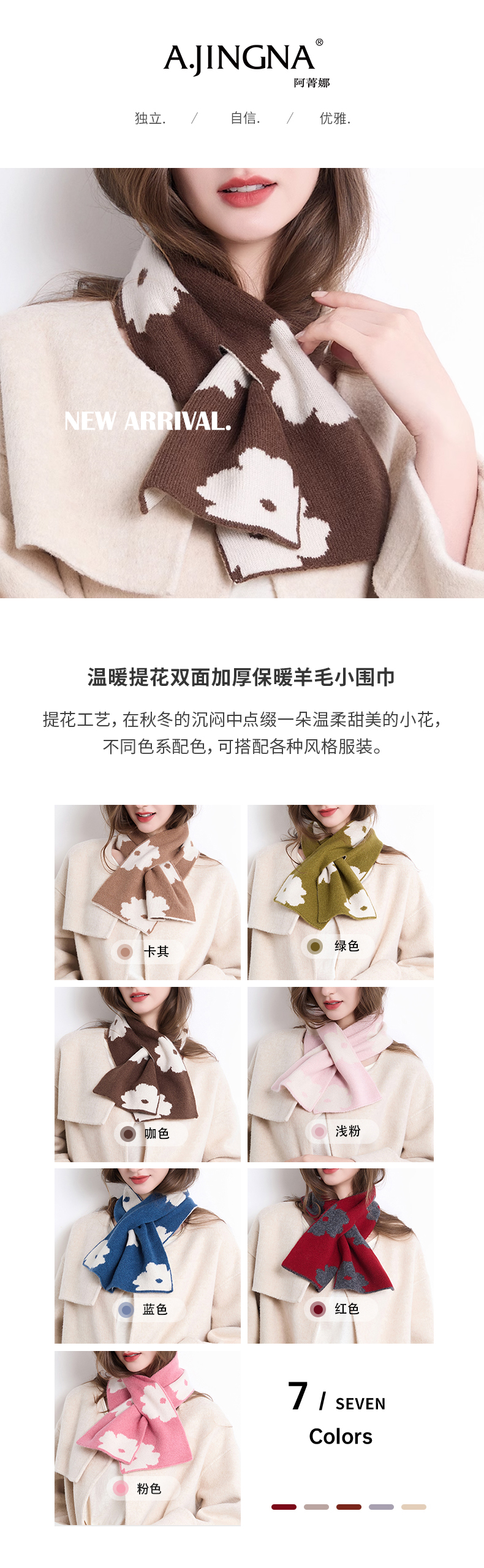 【100%澳洲羊毛】阿菁娜温暖提花双面加厚保暖羊毛小围巾F30D320008