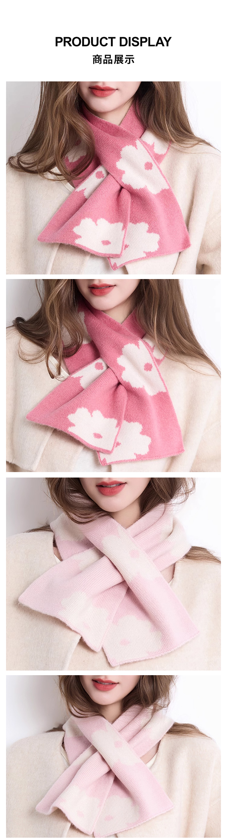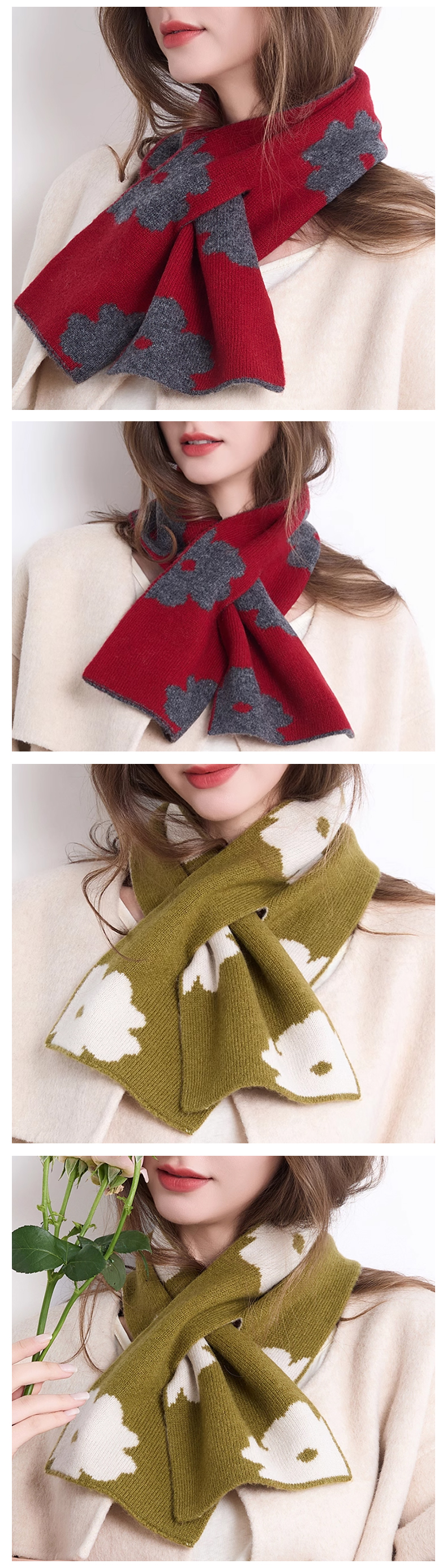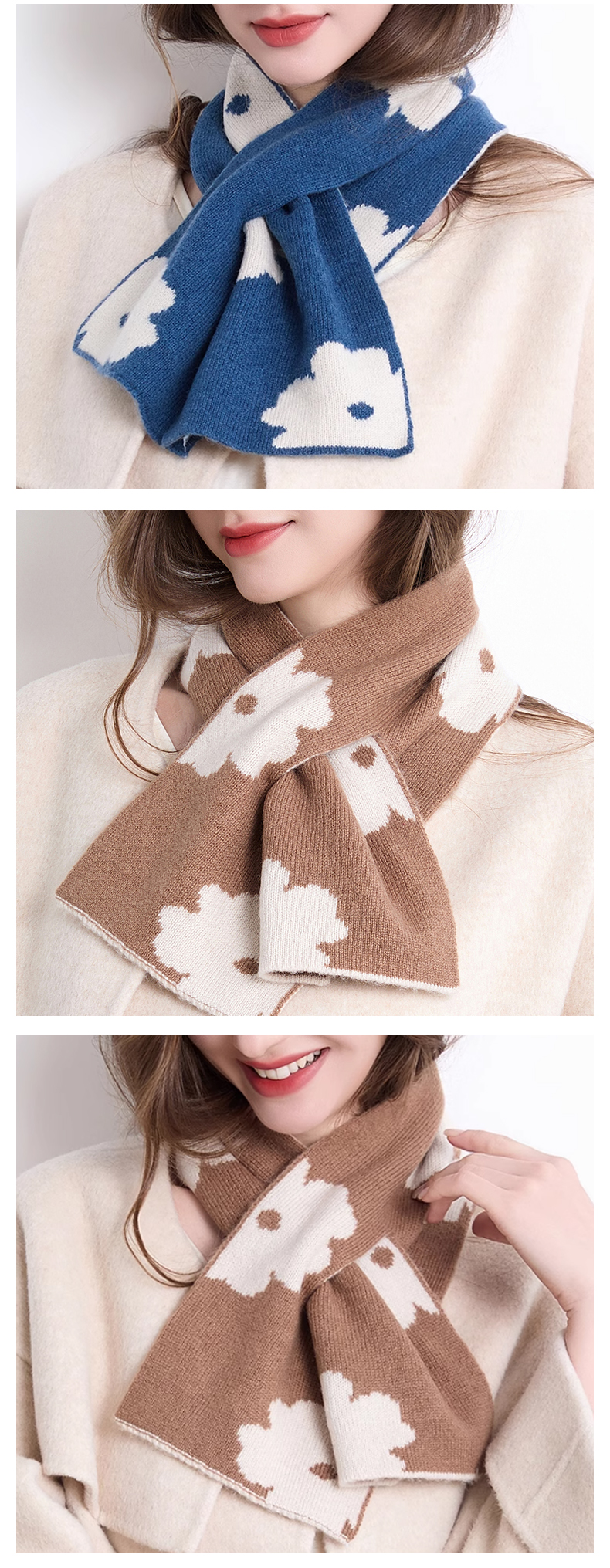 【100%澳洲羊毛】阿菁娜温暖提花双面加厚保暖羊毛小围巾F30D320008