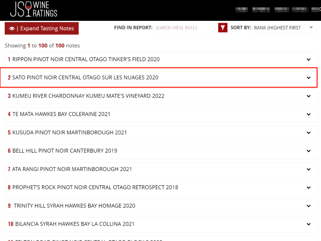 作为新西兰的顶级葡萄酒,国际知名酒评家James Suckling发布的2023新西兰醉佳100款酒榜单,Sato黑皮诺排第2,超越另三家膜拜酒:Bellhill,Kusuda和Felton Road。