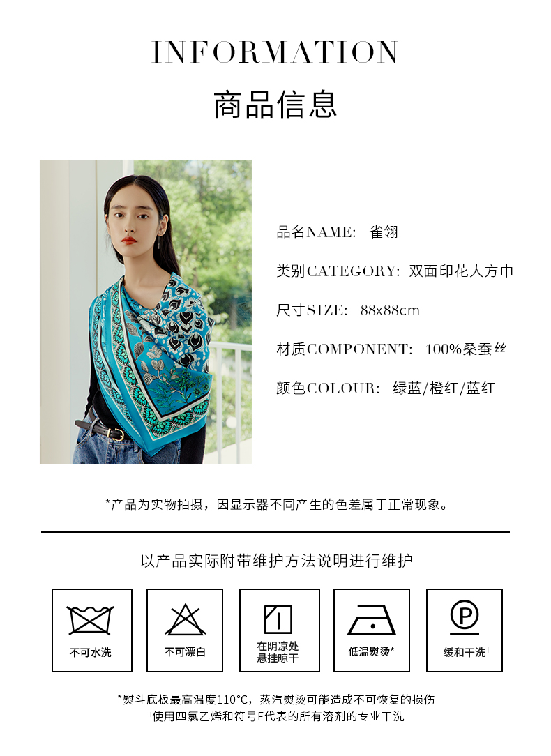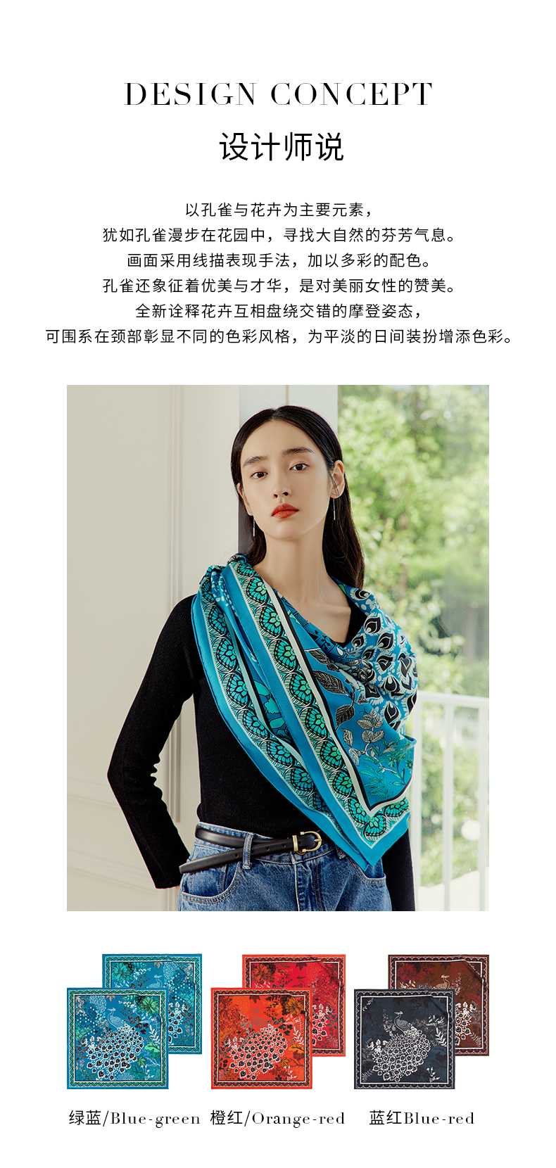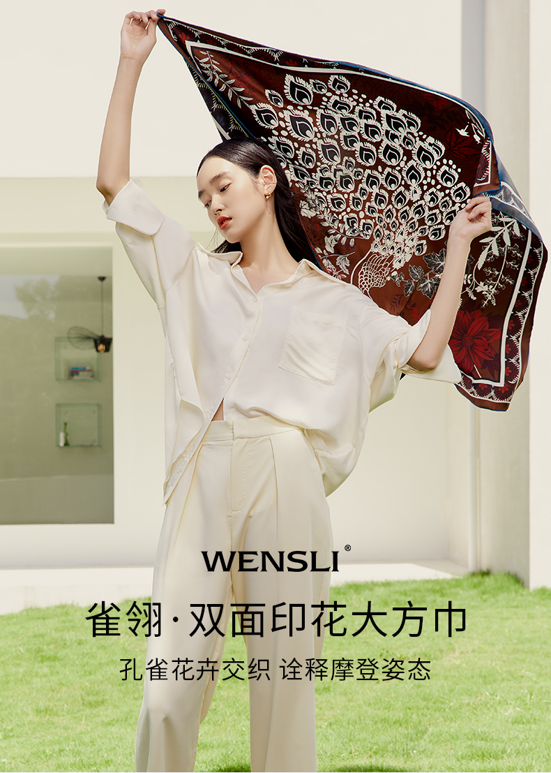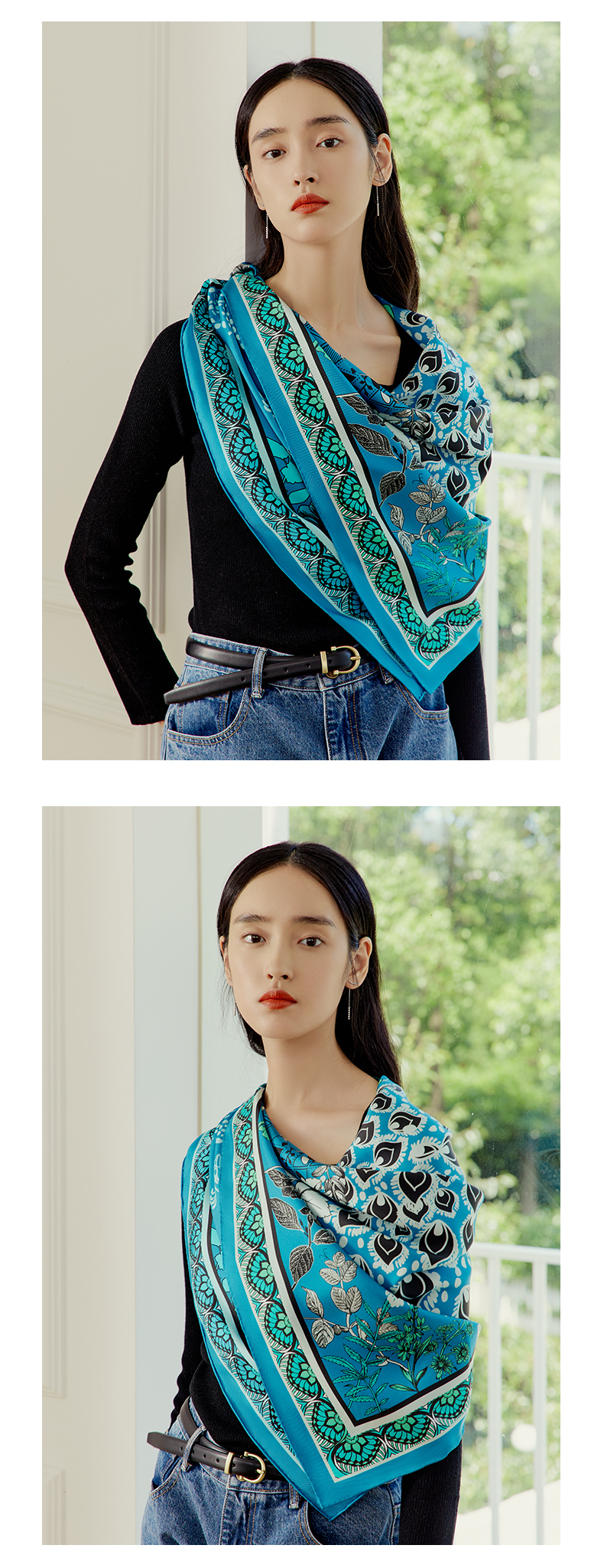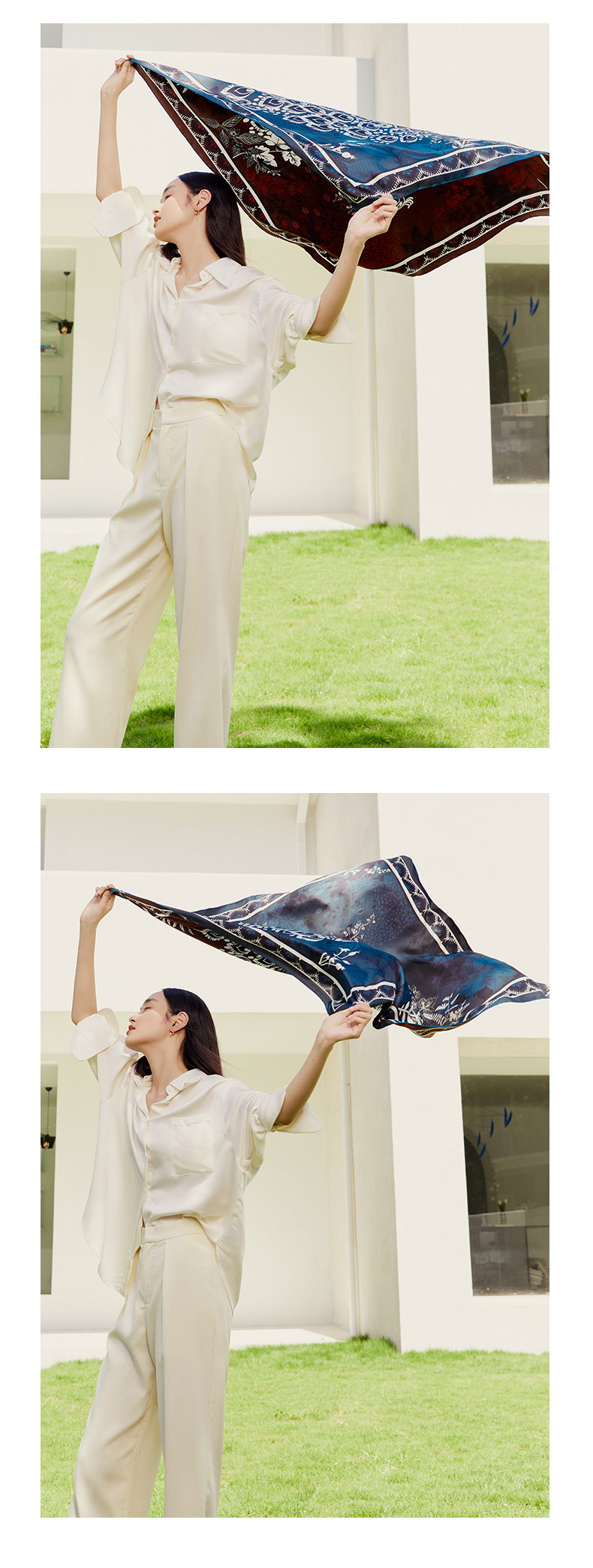 万事利“倾城时代”88厘米双面印花真丝大方巾