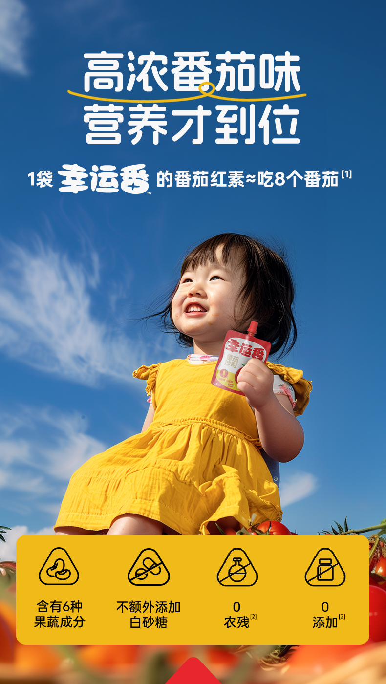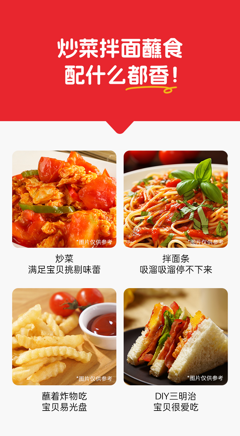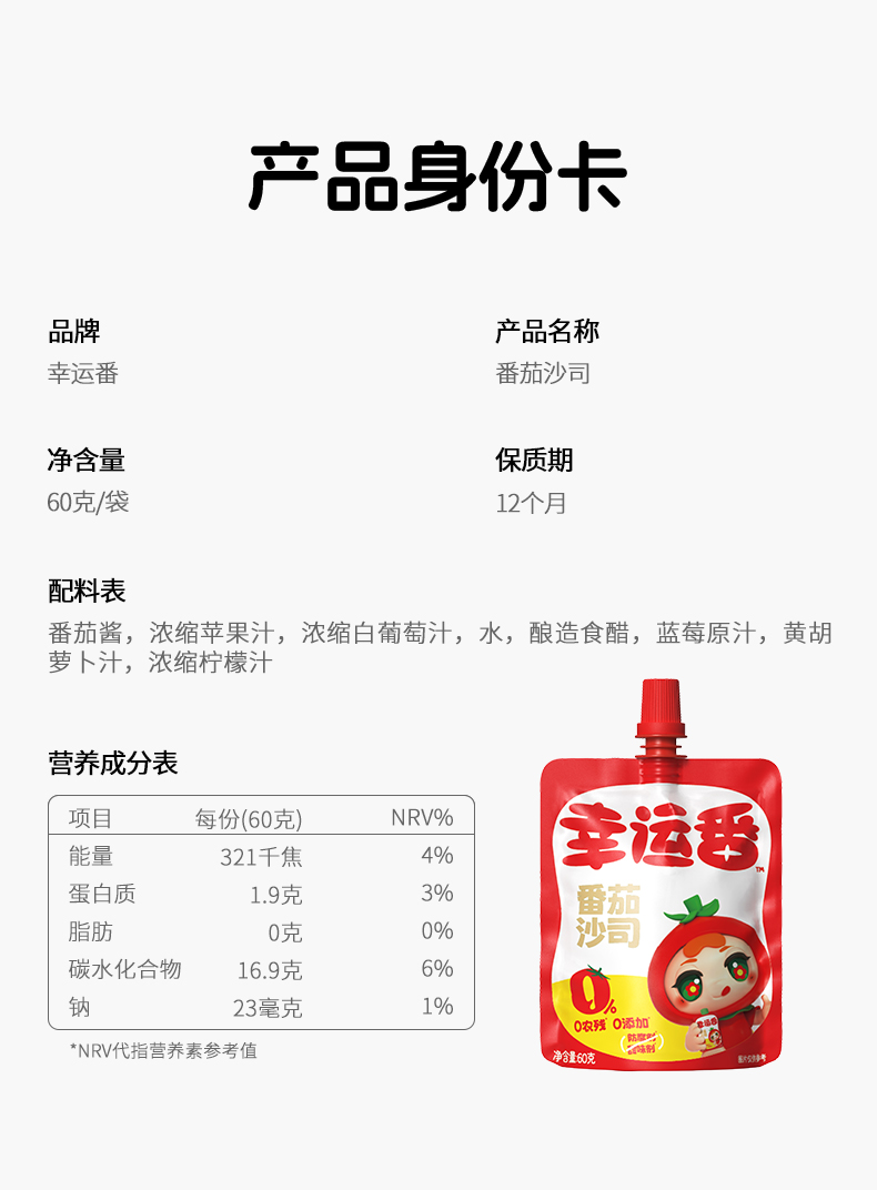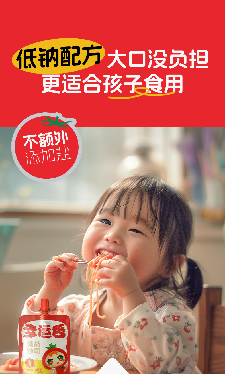 幸运番番茄沙司60g 高营养不怕比 小包装更方便 0添加低钠配方,不额外添加盐,口感细腻,适合儿童佐餐食用!