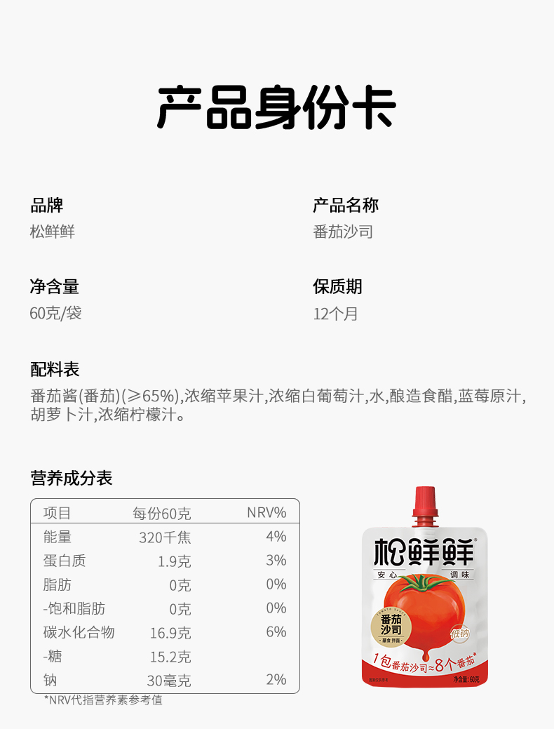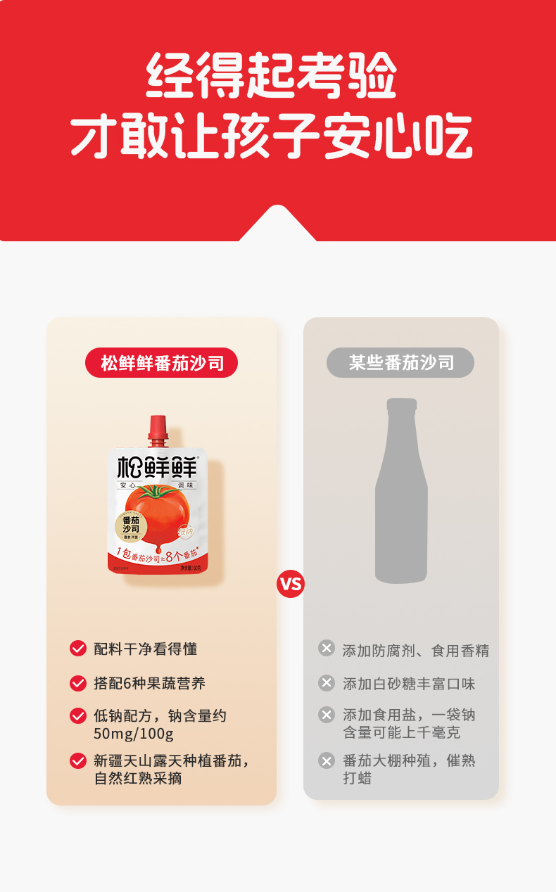 【fx】松鲜鲜番茄沙司60g 高营养不怕比 小包装更方便 0添加低钠配方,不额外添加盐,口感细腻,适合儿童佐餐食用!
