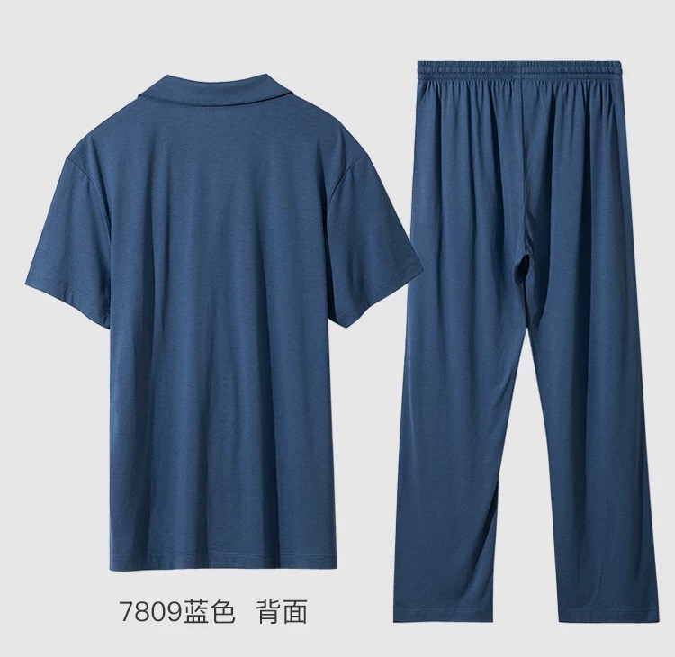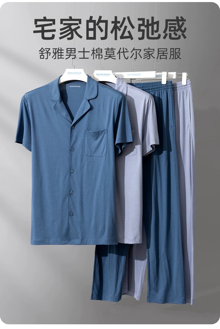 【提花棉莫代尔系列】舒雅男士莫代尔棉睡衣 夏季翻领开衫短袖长裤家居服套装39/27134H