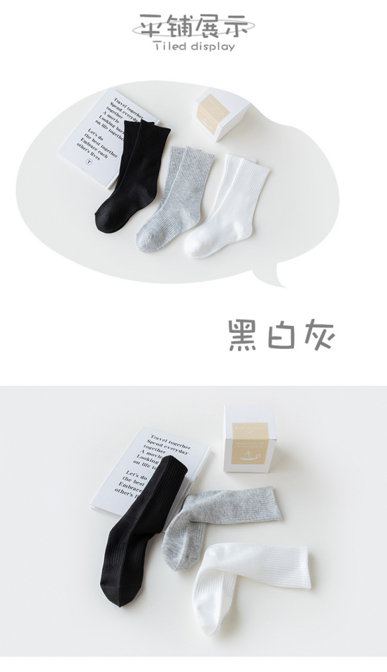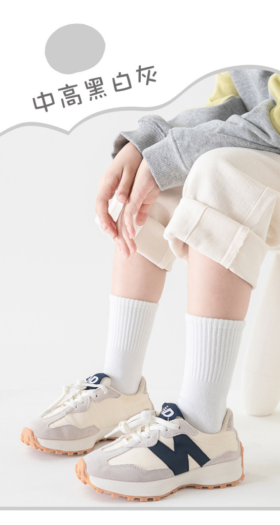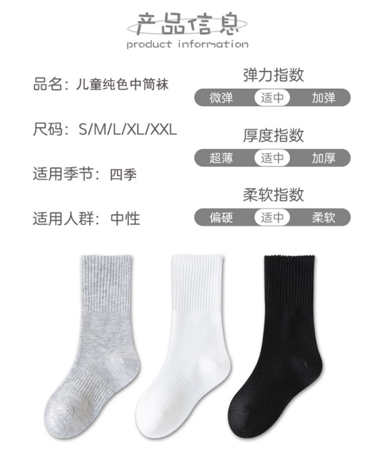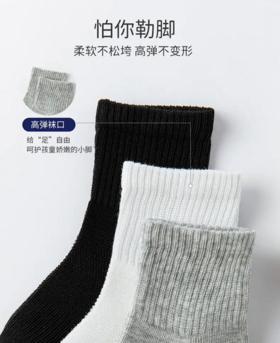 💥【叽叽呀呀 儿童纯色中筒袜5双装】 😎1.新疆长绒棉材质,透气吸汗不闷脚!💦手工对目无骨缝制袜头,平整贴合,不硌脚,😍